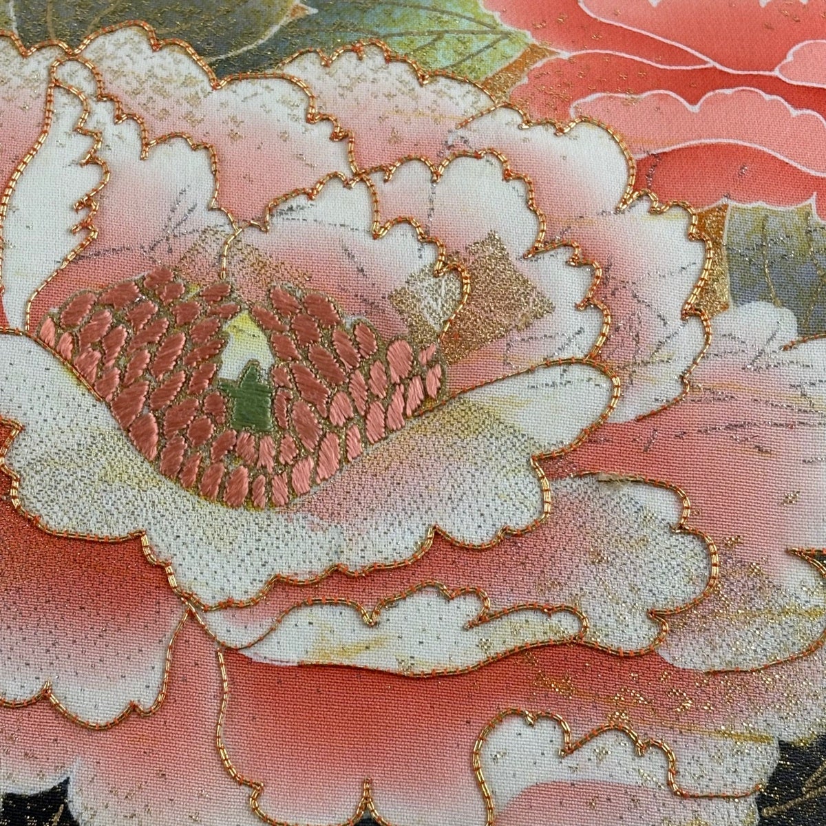 【美品】 名古屋帯 秀品 草花 刺繍 黄土色 正絹