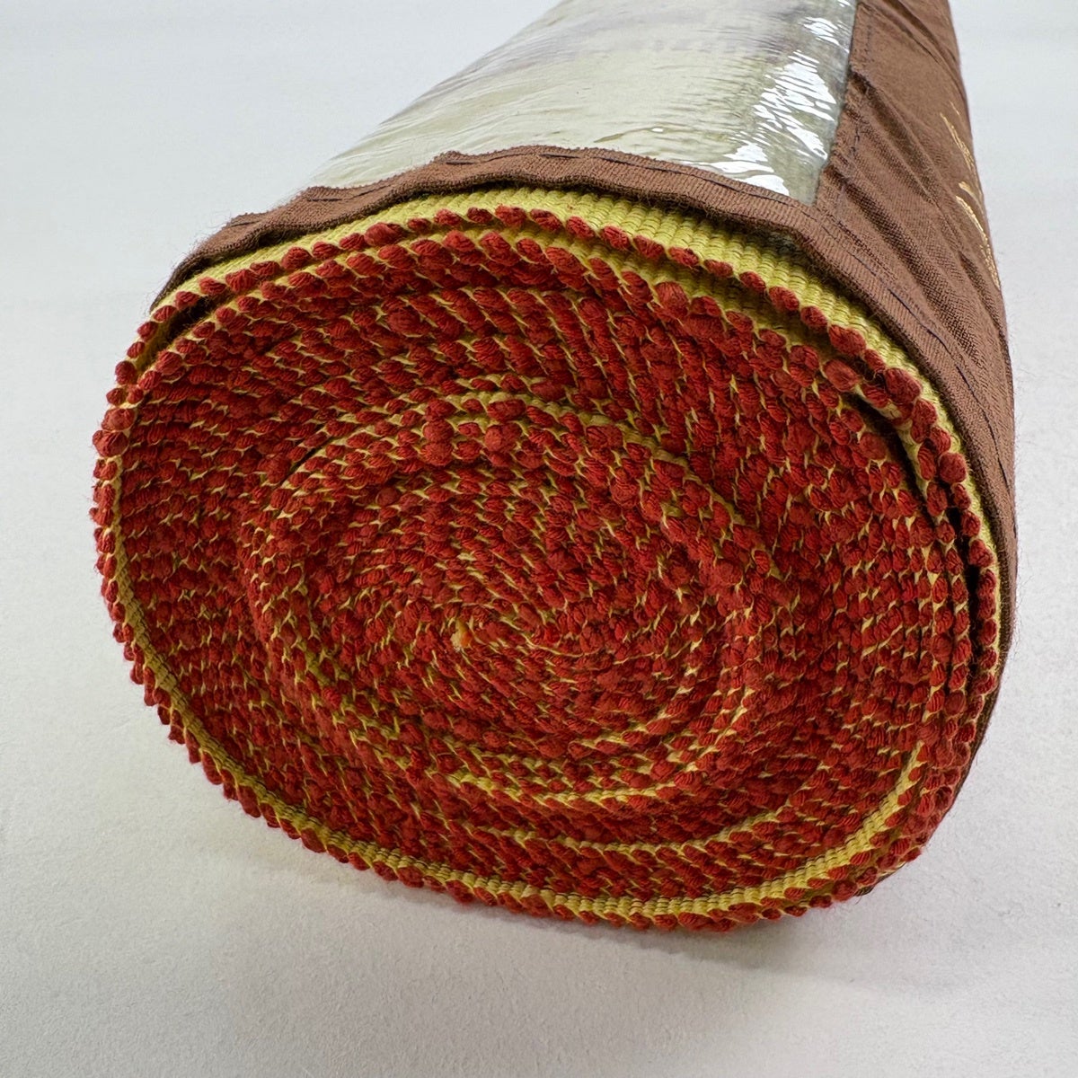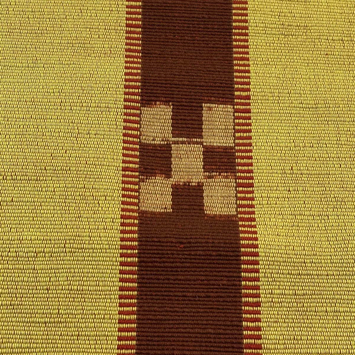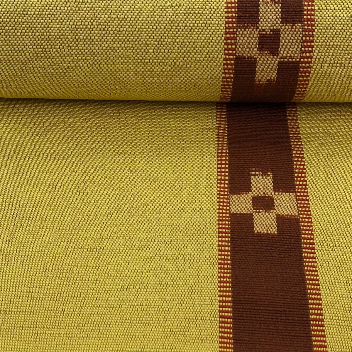 袋帯 名品 こぎん織り 菱 幾何学 黄土色 六通 正絹