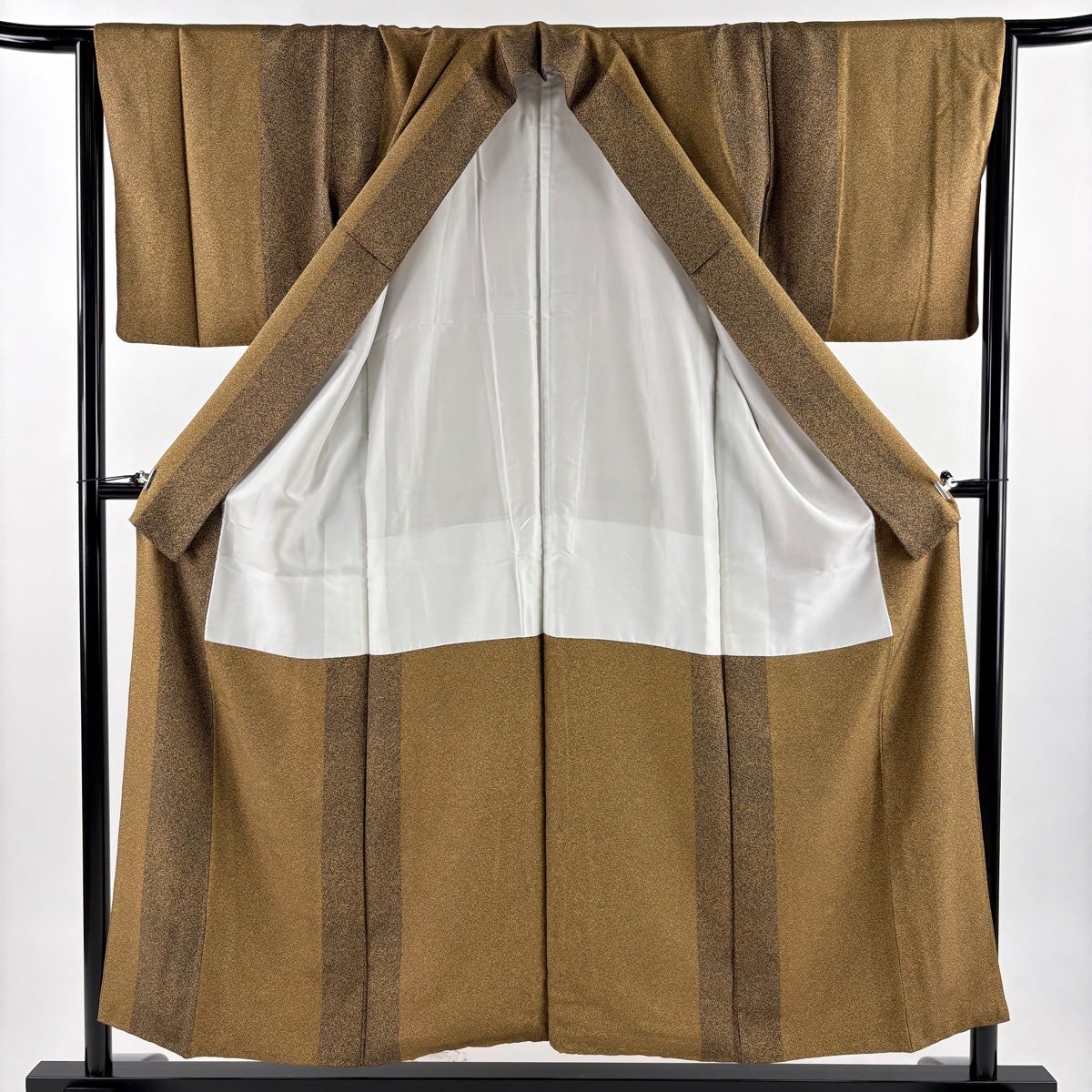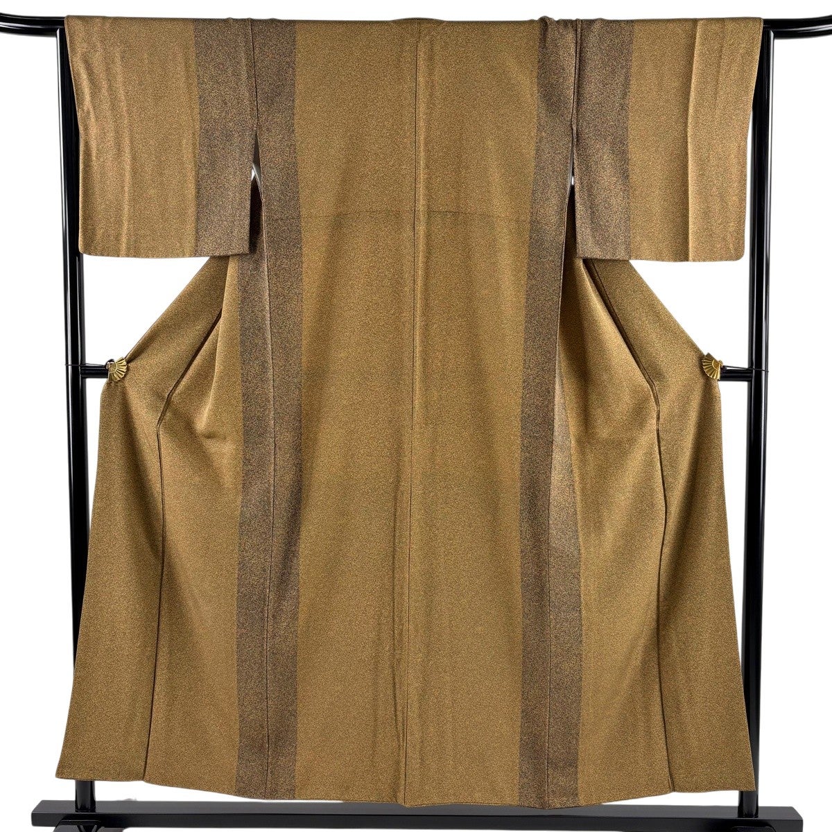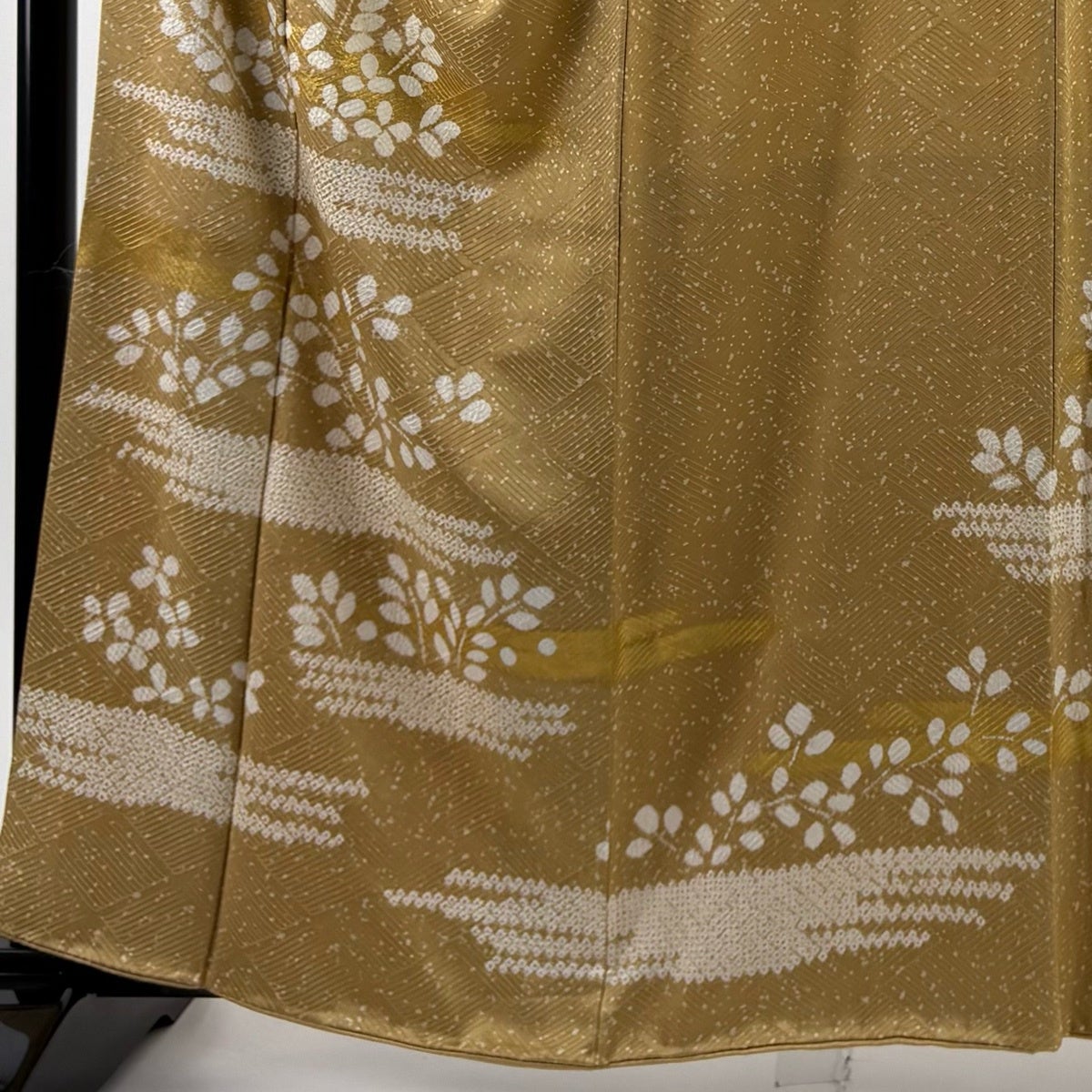 付下げ 身丈162cm 裄丈64cm M 袷 箔散らし 縦縞 金糸 ぼかし 山吹茶色 正絹 秀品