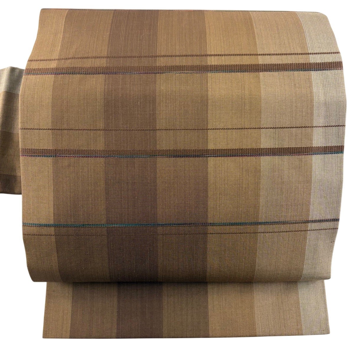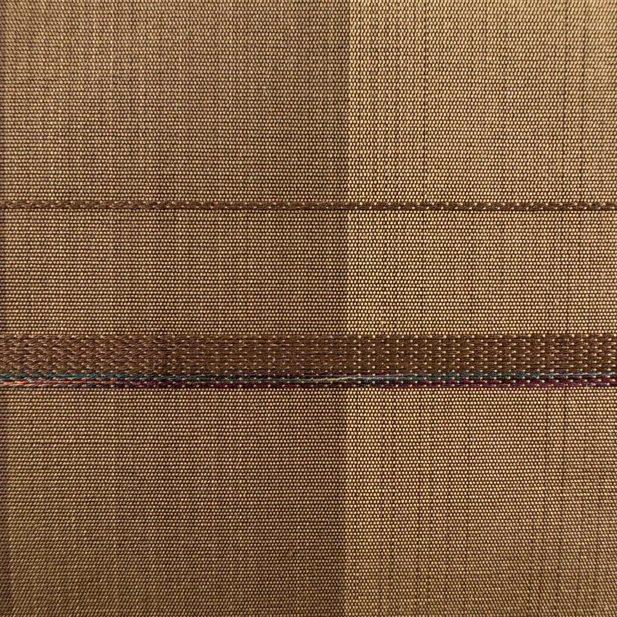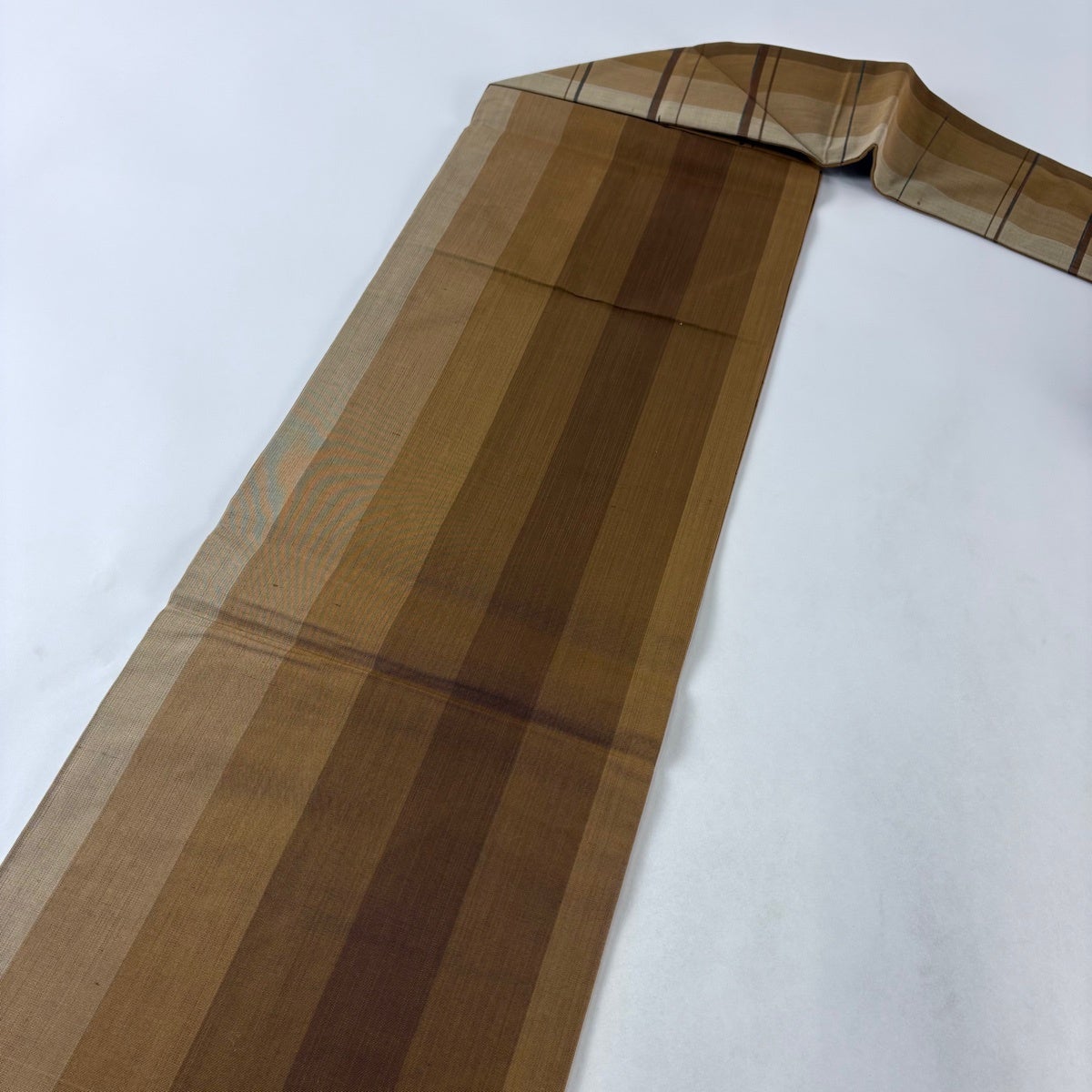 【美品】 袋帯 秀品 縞 山吹茶色 全通 正絹