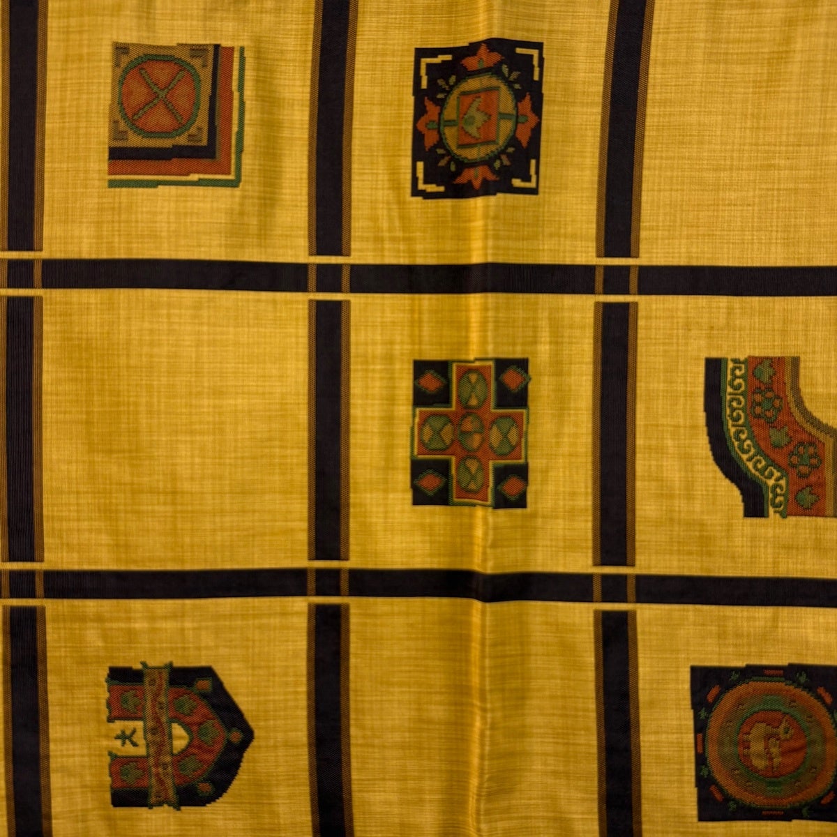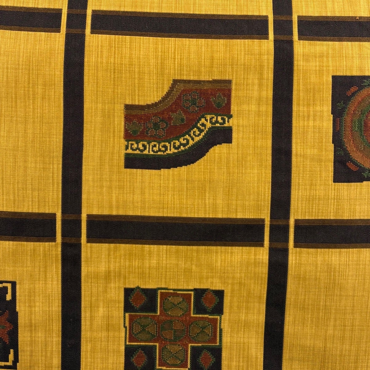 【美品】 袋帯 秀品 幾何学模様 山吹色 全通 正絹