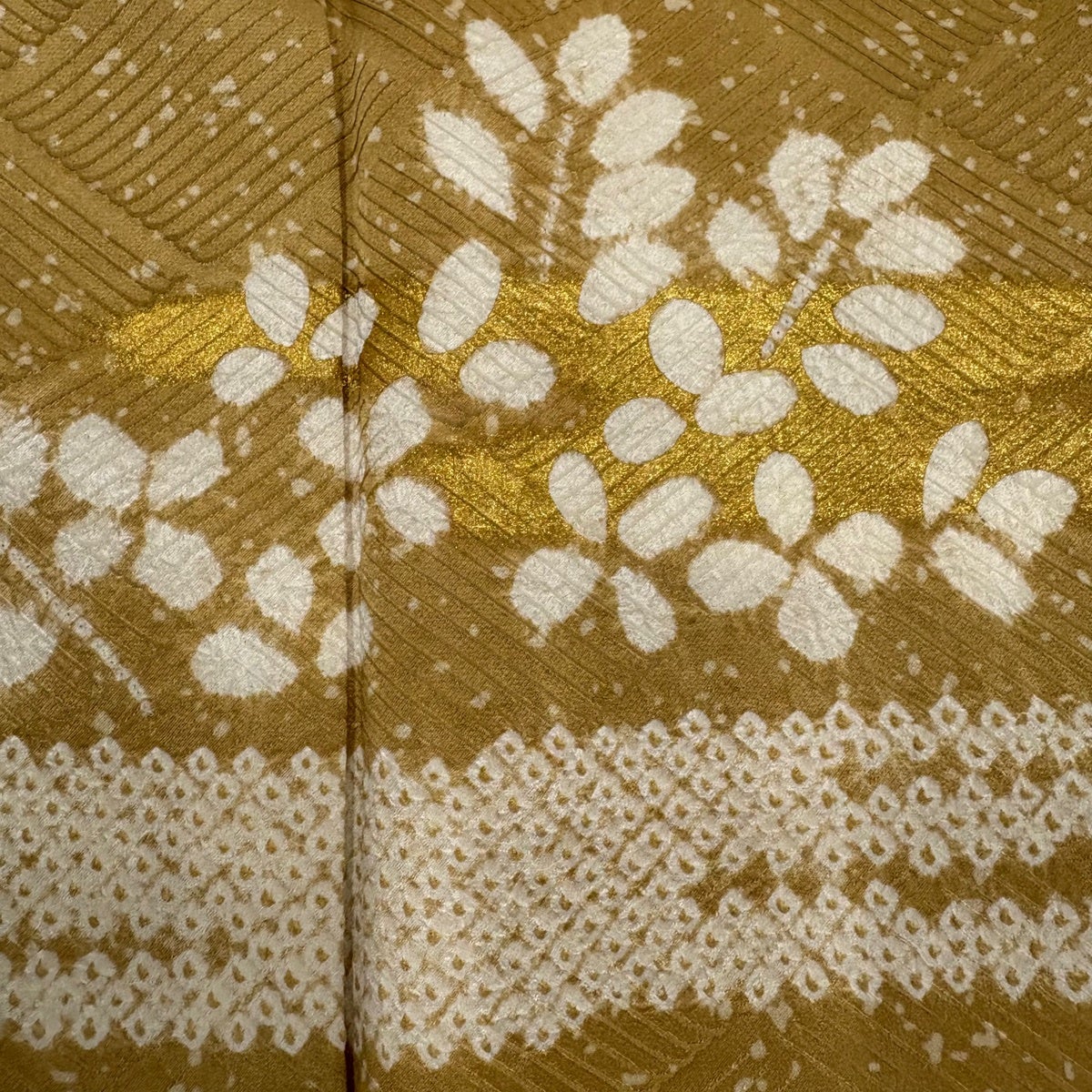 訪問着 身丈165cm 裄丈64cm M 袷 辻が花 銀通し 金彩 からし色 正絹 名品