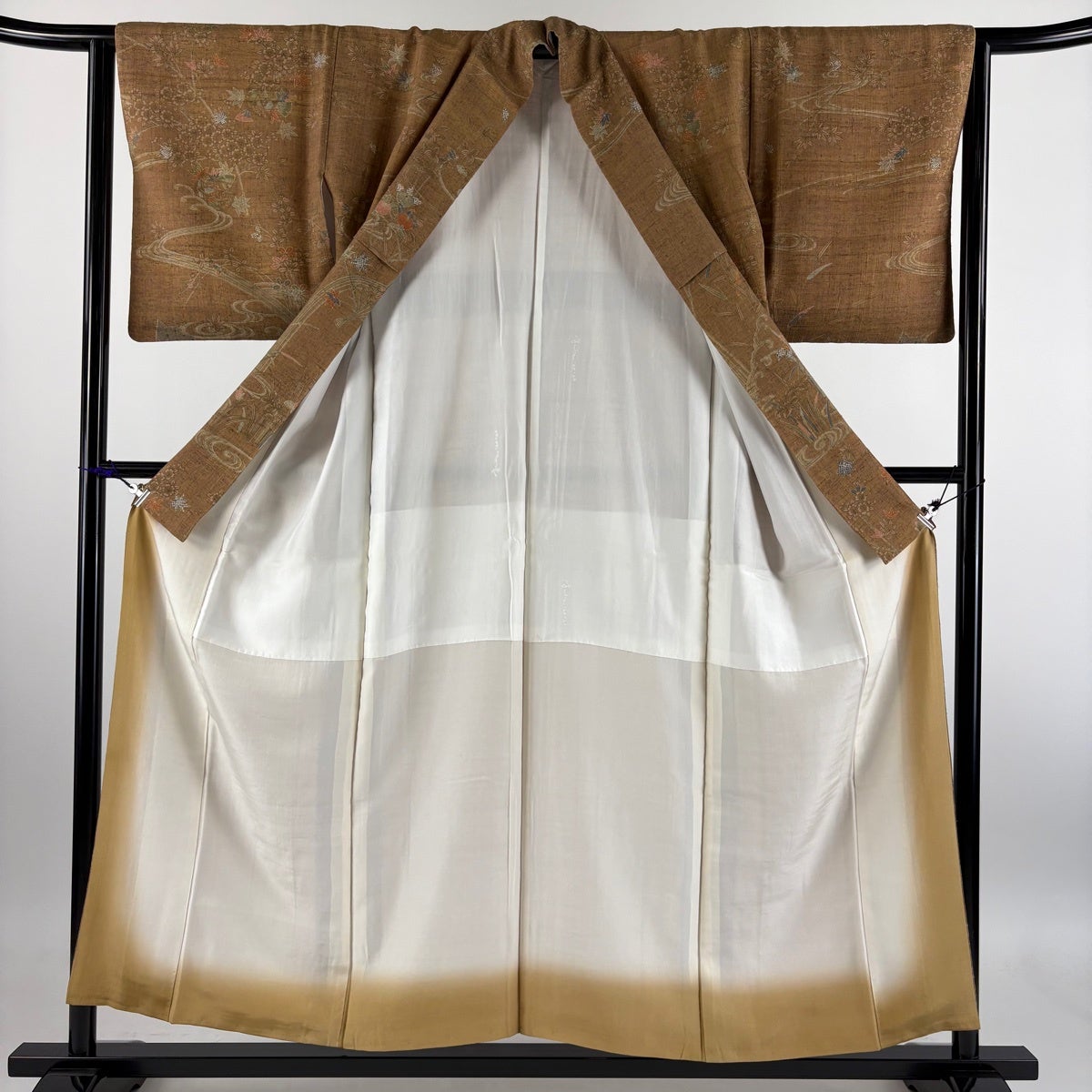 長襦袢 身丈119cm 裄丈64.5cm M 墨流し ぼかし 山吹茶色 正絹 秀品