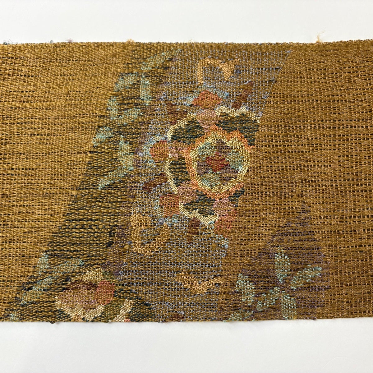 【美品】 袋帯 秀品 七彩王朝錦 金糸 唐織 薄黄土色 六通 正絹