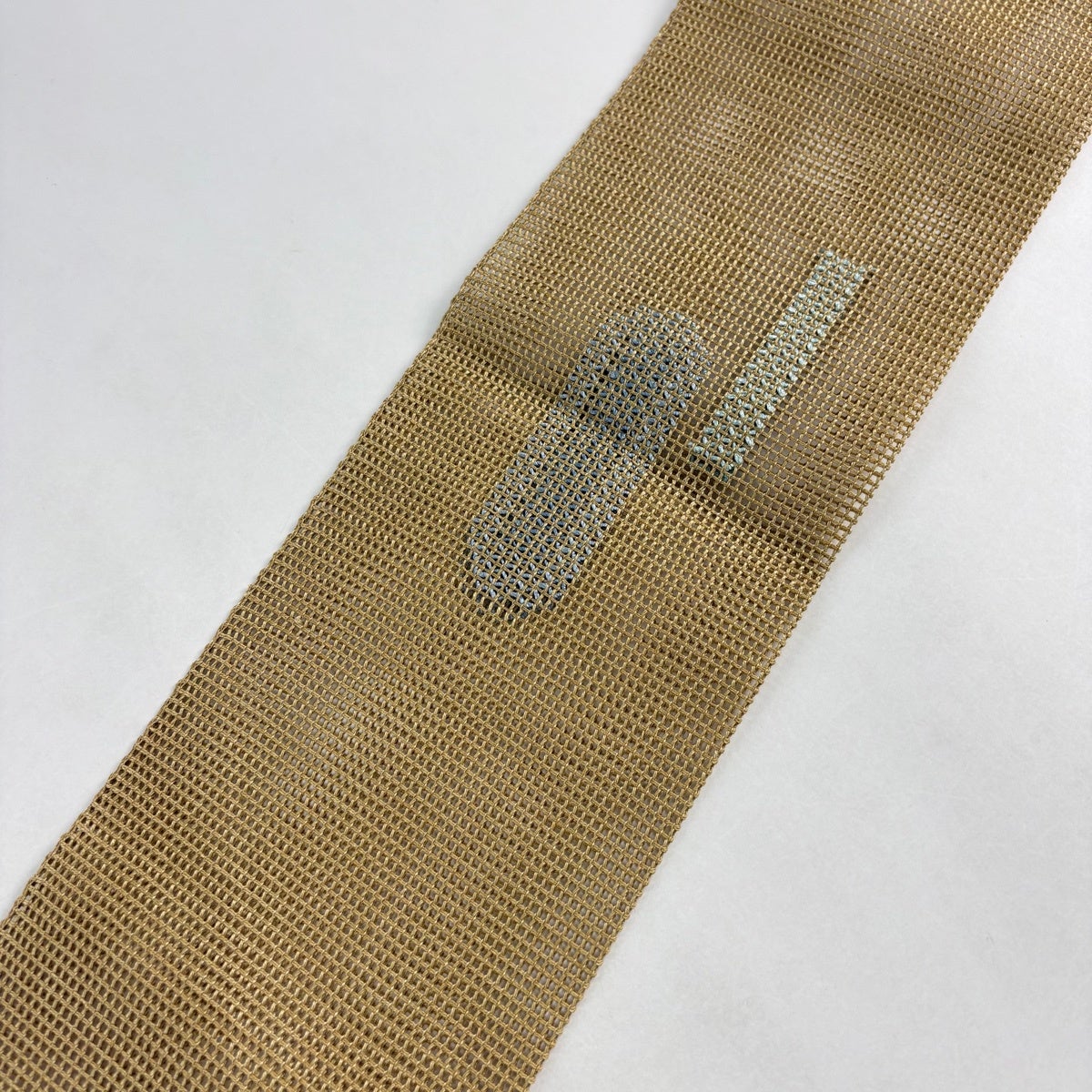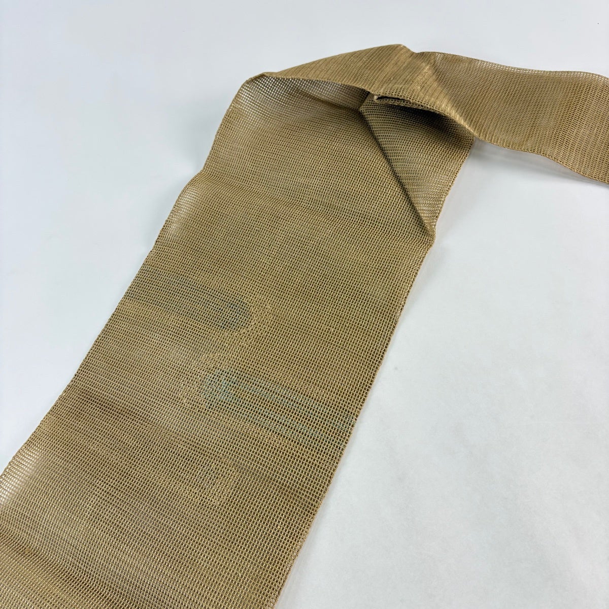 名古屋帯 秀品 夏帯 八寸名古屋帯 松葉仕立て トンネル仕立て 幾何学模様 薄黄土色 正絹
