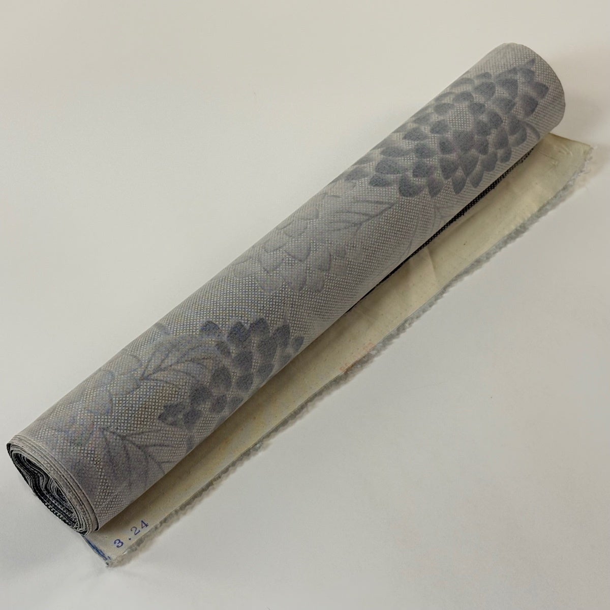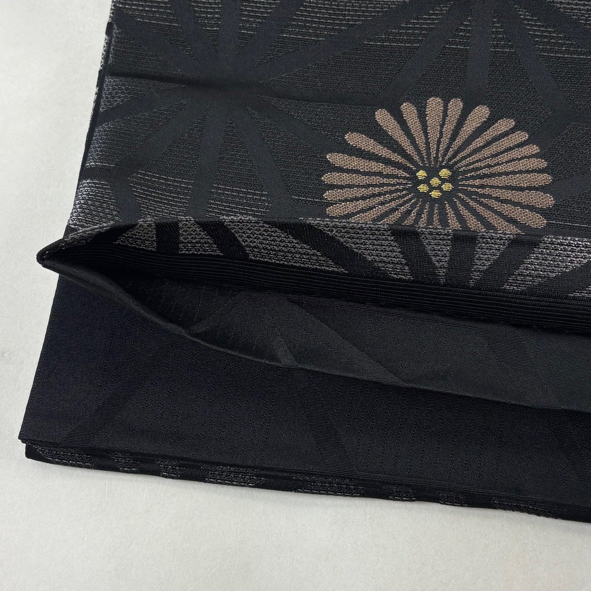 【美品】 袋帯 秀品 扇面 菊 箔 黒灰 六通 正絹