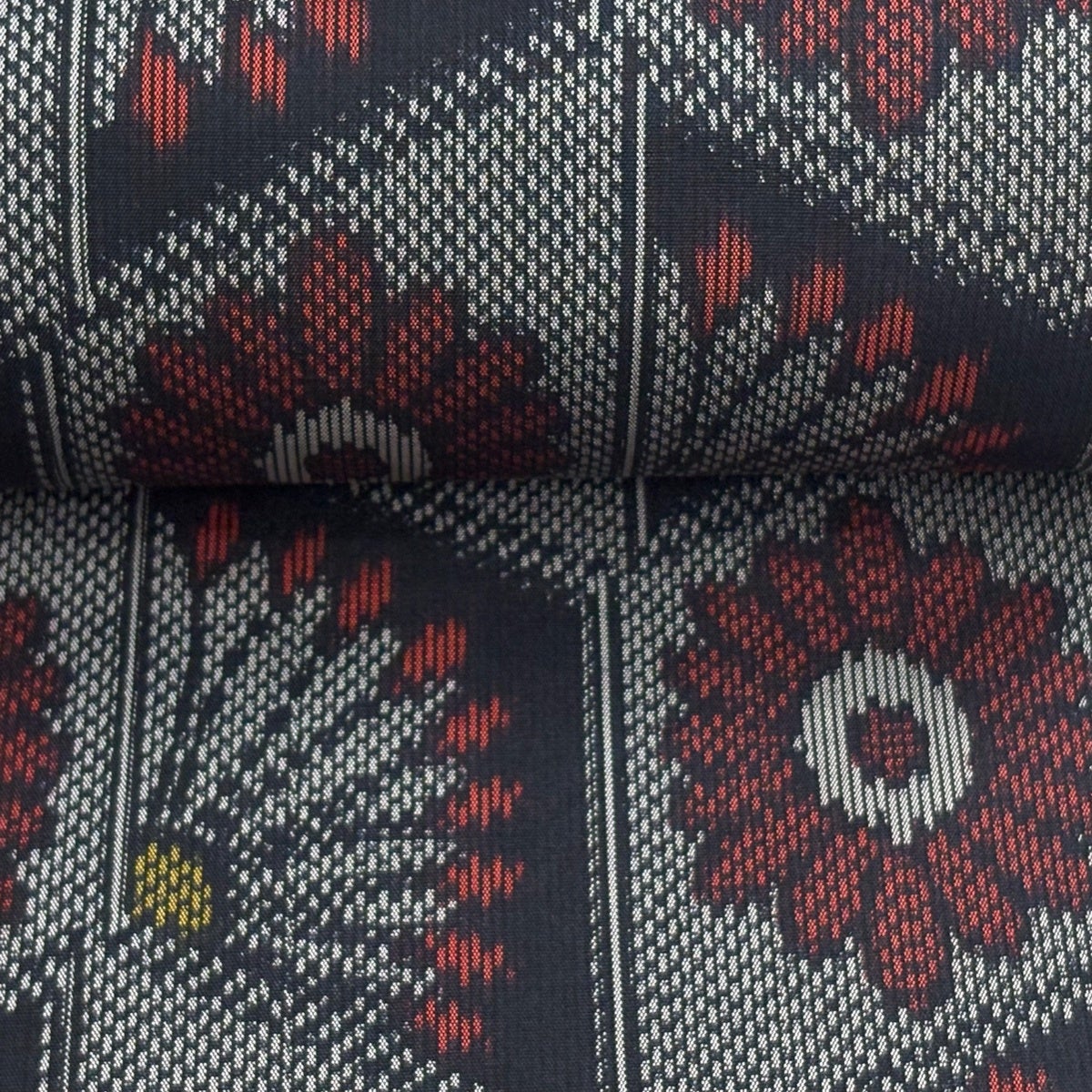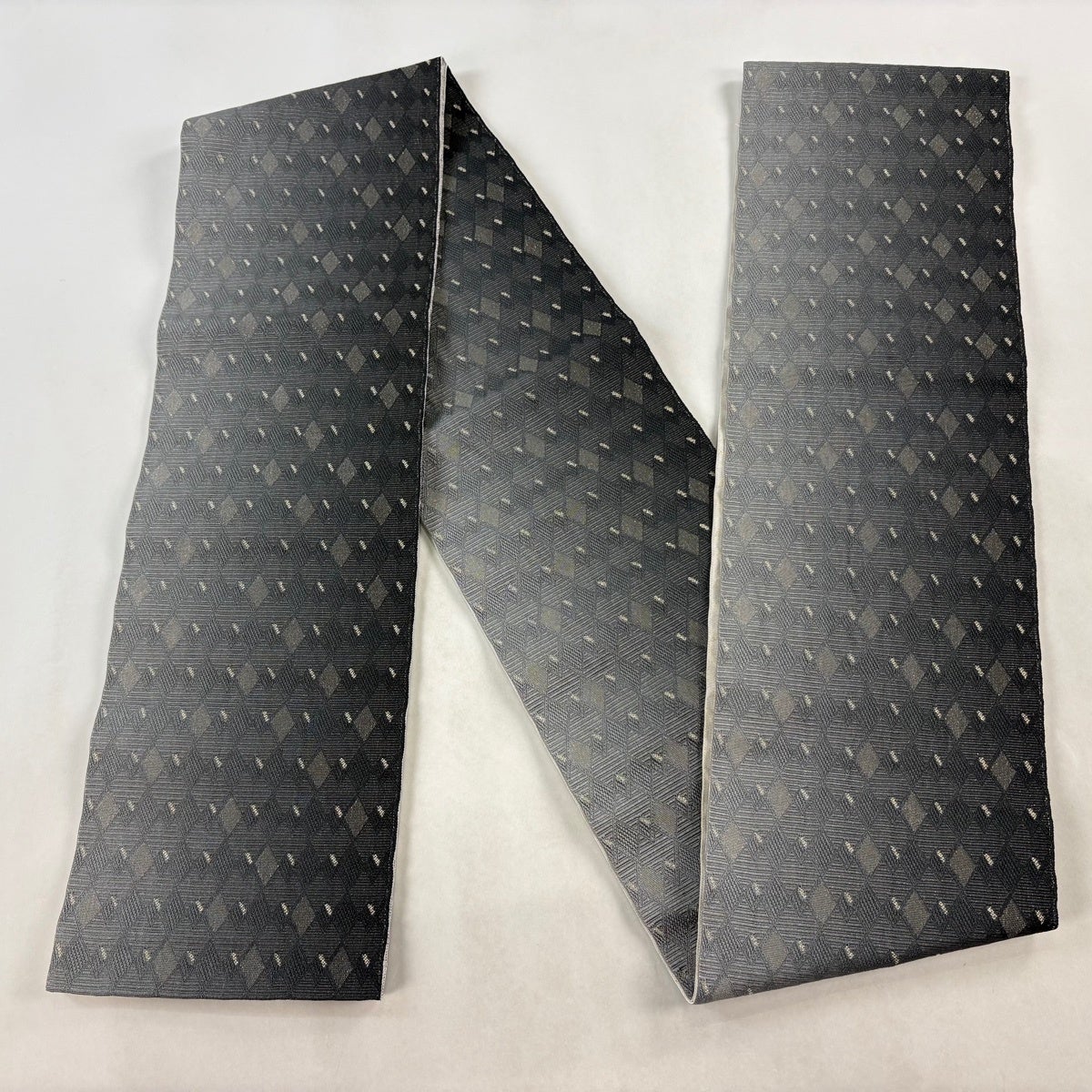 名古屋帯 秀品 夏帯 八寸名古屋帯 幾何学 黒灰 正絹