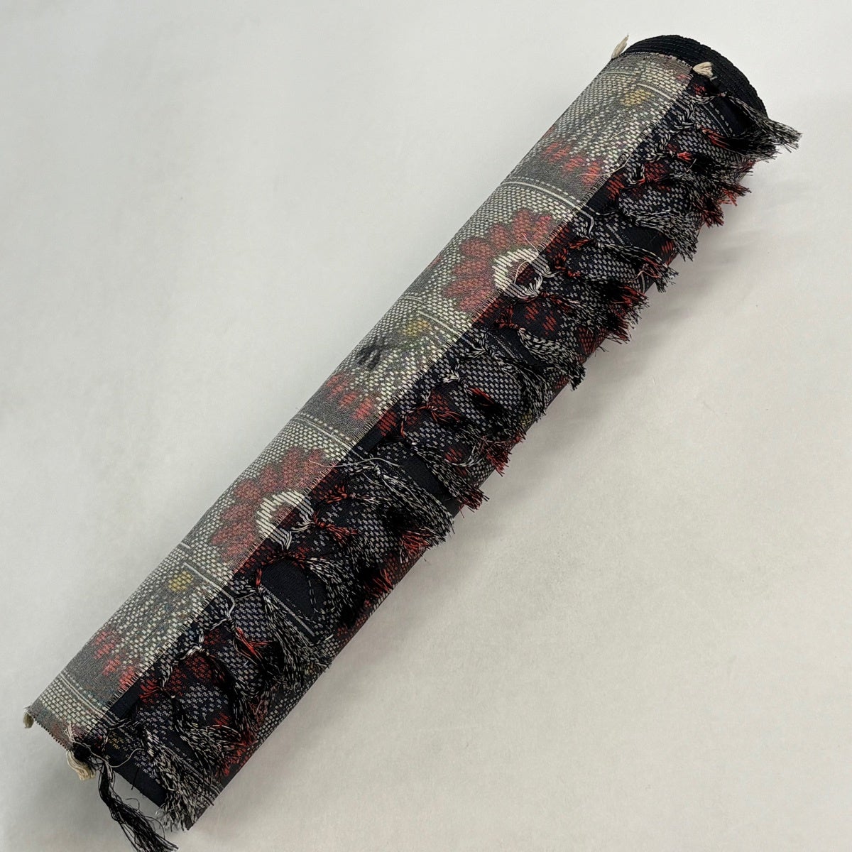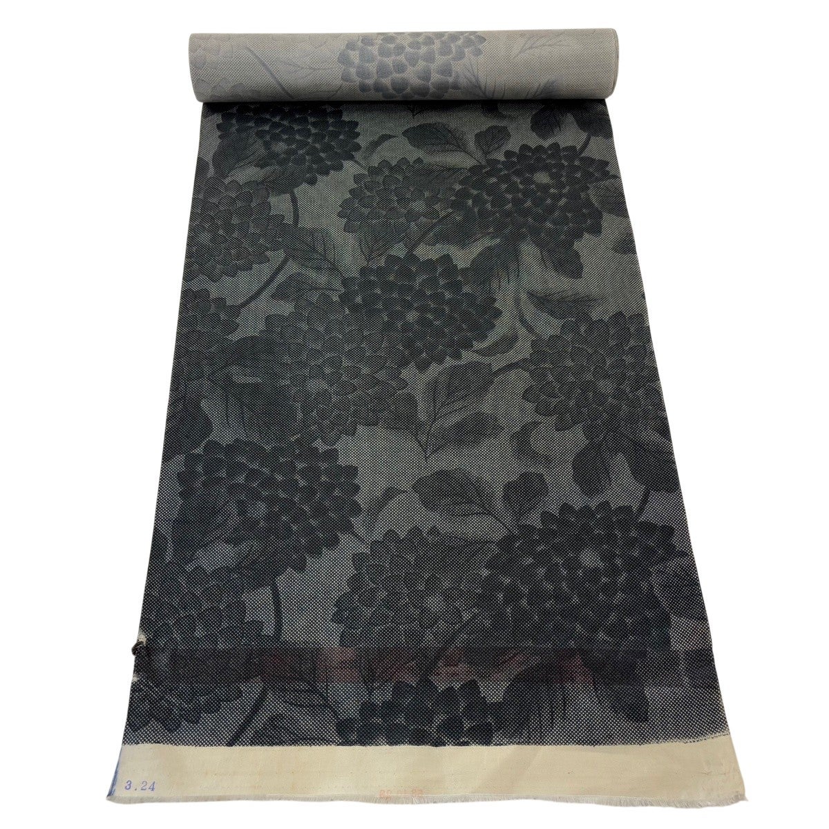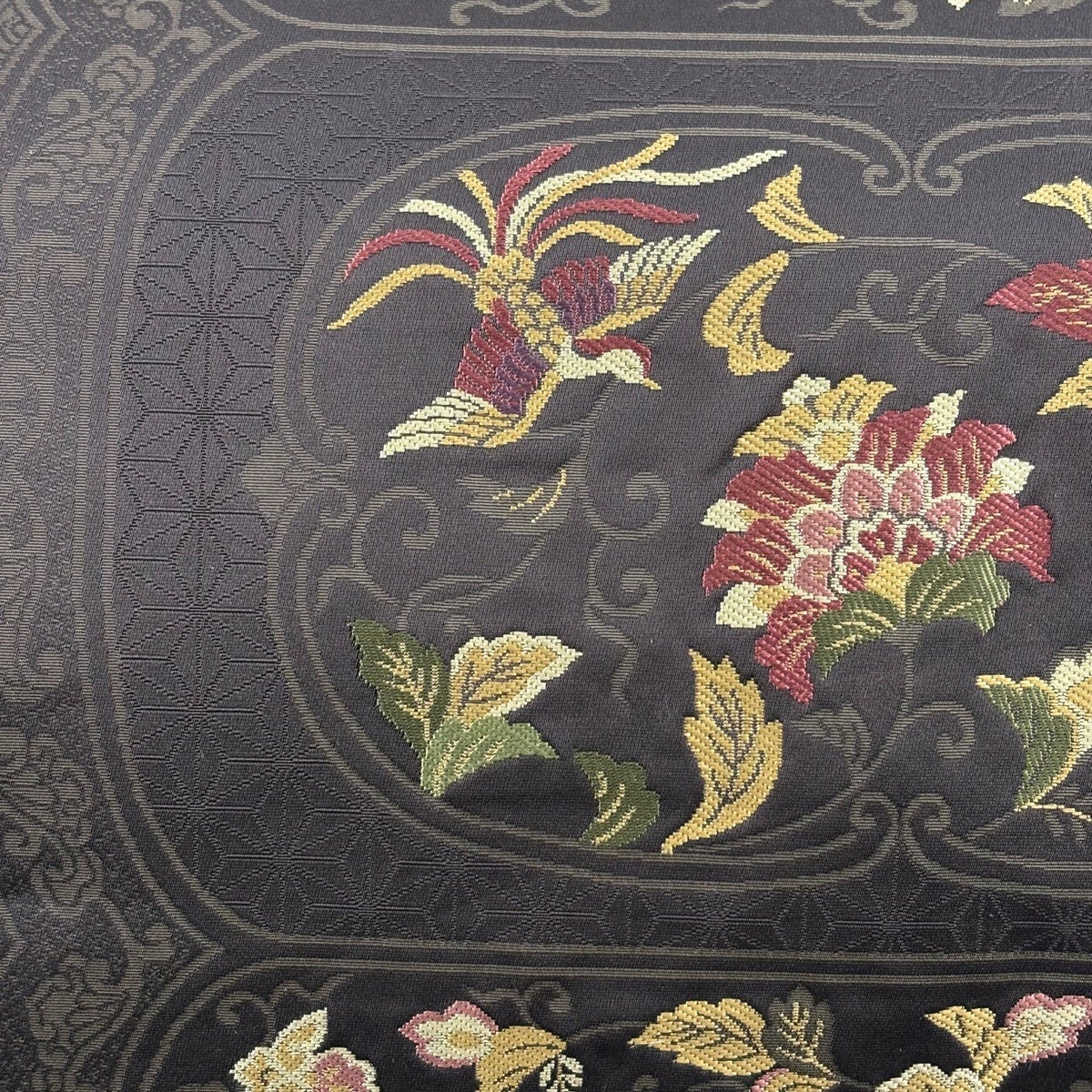 袋帯 秀品 雪輪 草花 唐織 箔 黒灰 六通 正絹
