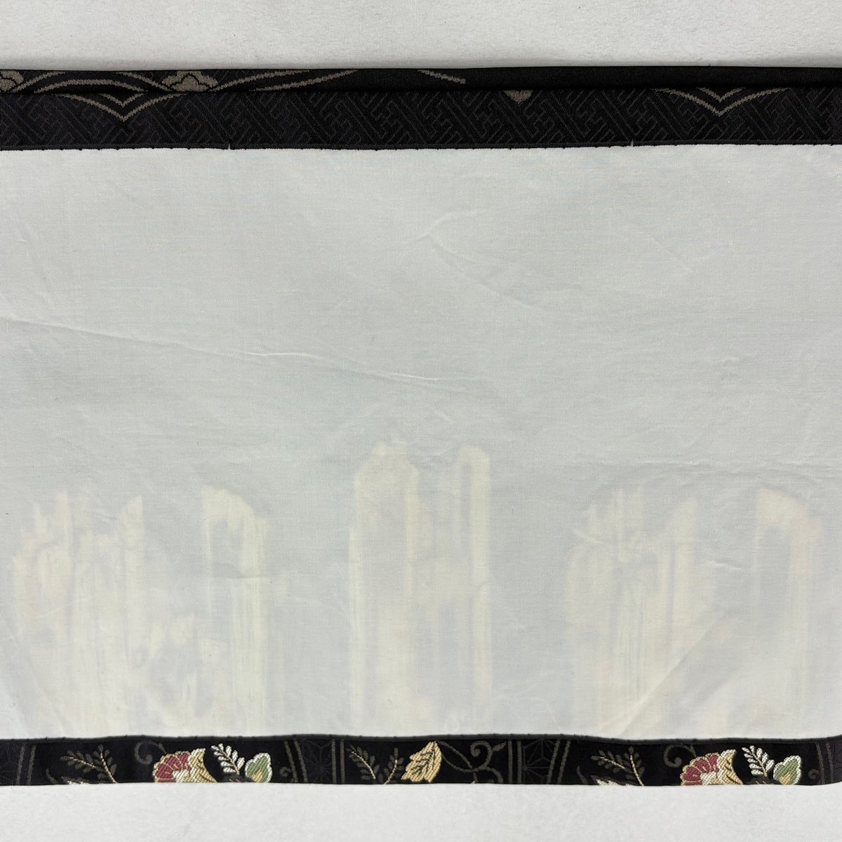 袋帯 秀品 枝花 銀糸 箔 黒灰 お太鼓柄 正絹