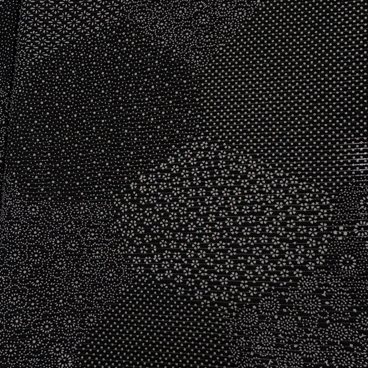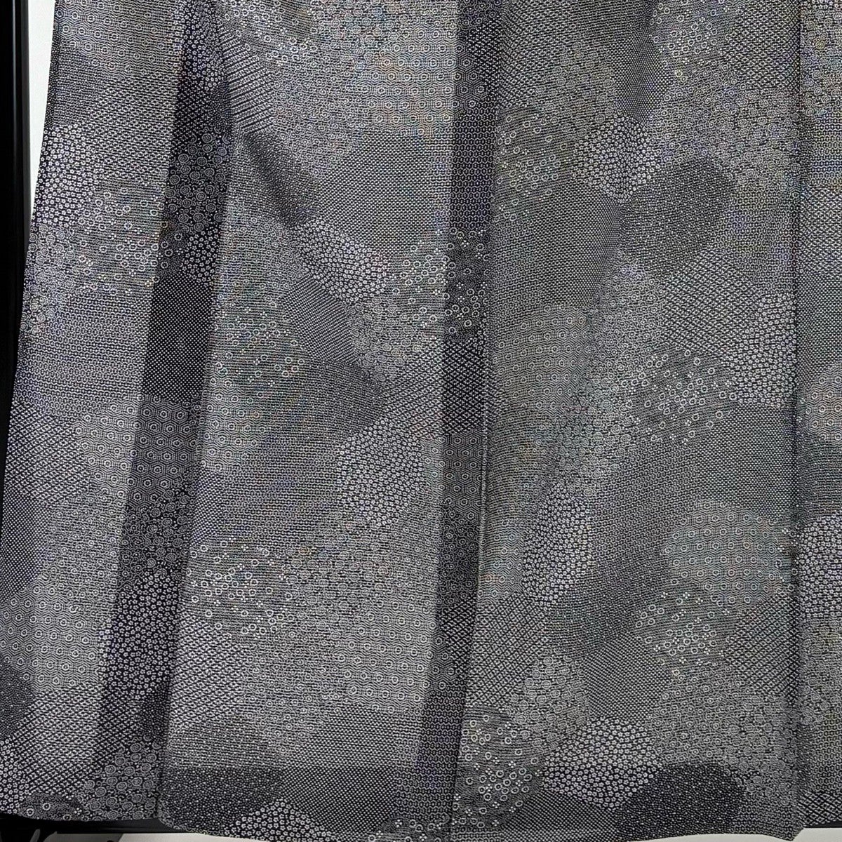 【美品】 小紋 身丈155cm 裄丈64.5cm M 袷 雪輪 幾何学模様 ぼかし 黒灰 正絹 秀品