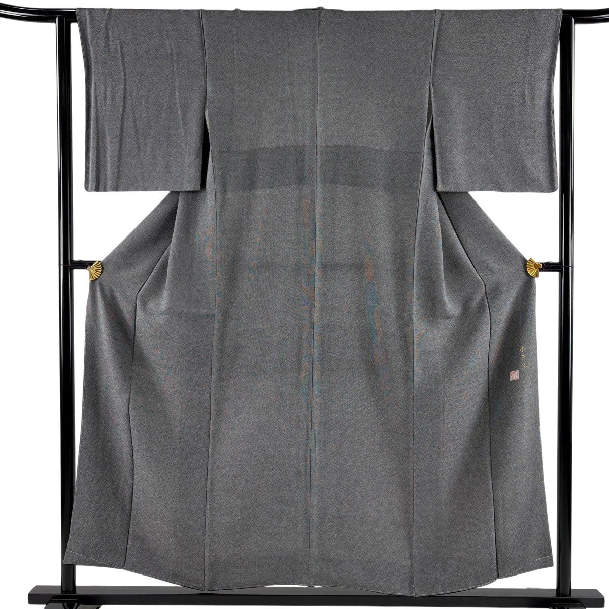 江戸小紋 身丈151.5cm 裄丈64.5cm M 薄物 染谷梅治 落款あり 毛万筋 黒灰 正絹 名品