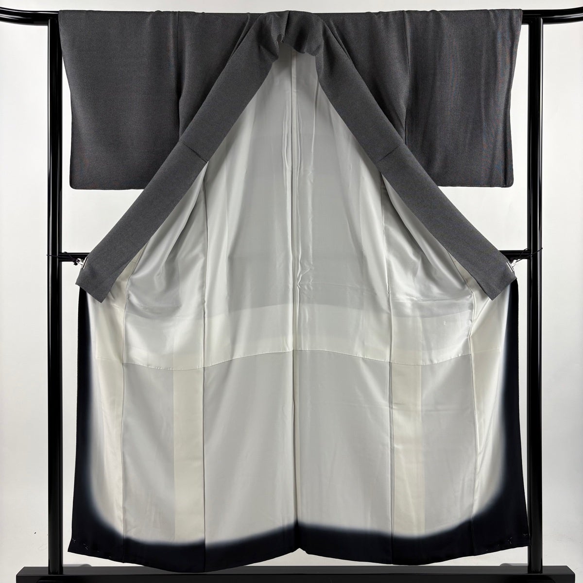 付下げ 身丈162.5cm 裄丈61.5cm S 薄物 絽 草花 流水 銀糸 黒灰 正絹 秀品 一つ紋