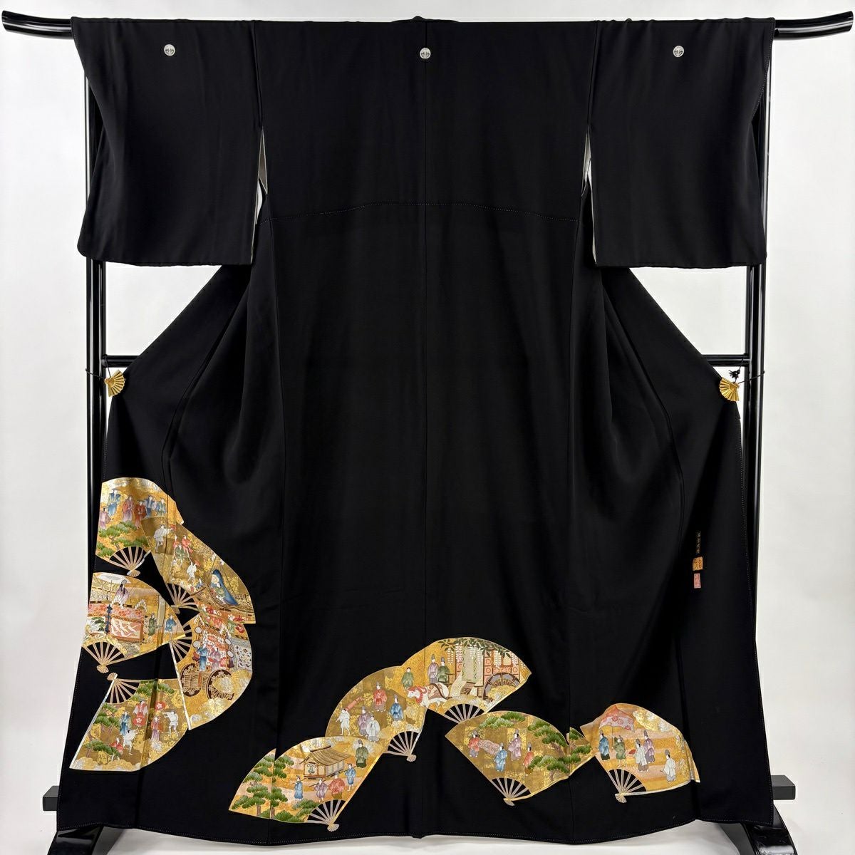 黒留袖 身丈164cm 裄丈67cm M 袷 堀省平 落款あり 扇 人物 金銀彩 黒 正絹 名品