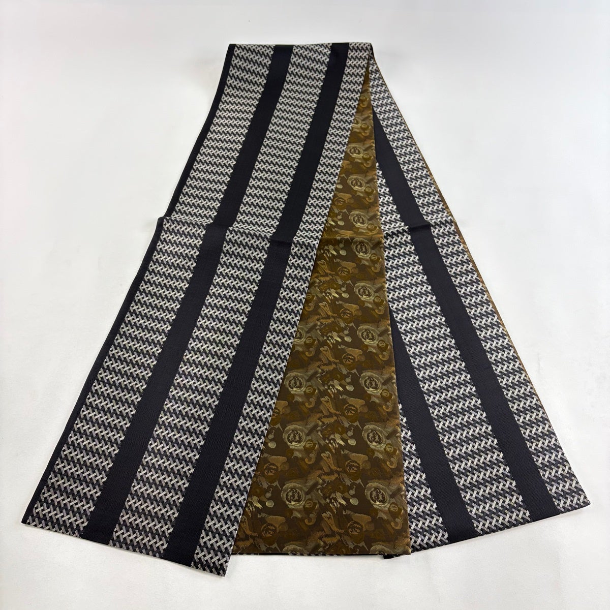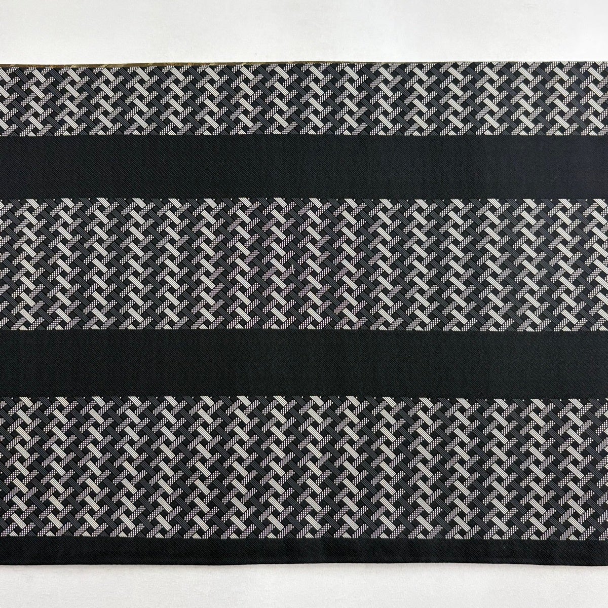 【美品】 袋帯 名品 幾何学 黒 六通 正絹