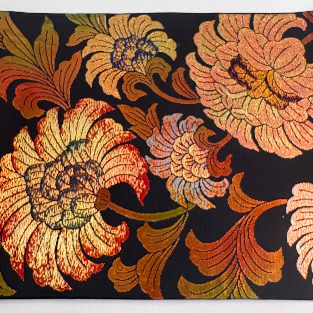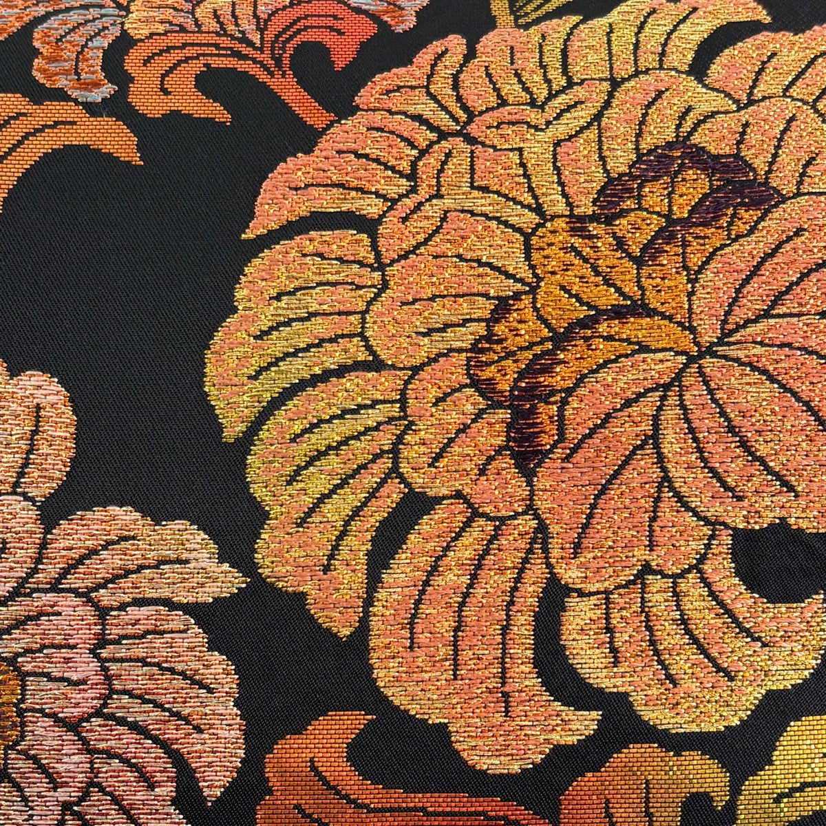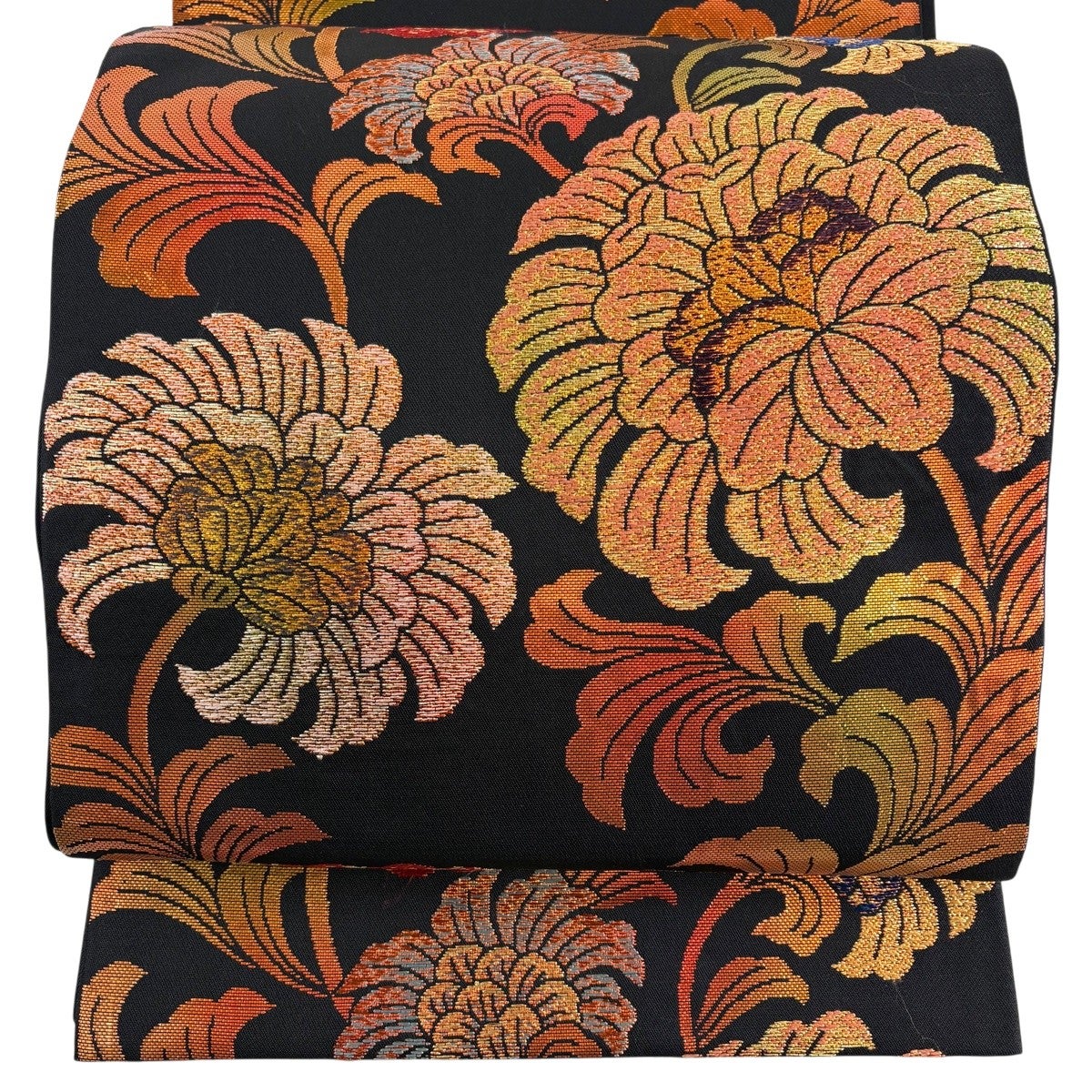袋帯 秀品 牡丹 霞 金糸 箔 黒 六通 正絹