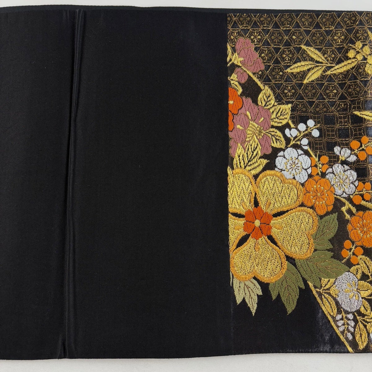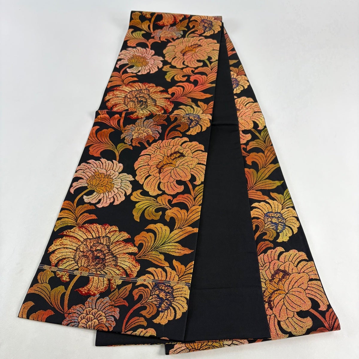 袋帯 秀品 梅 菊 唐織 箔 黒 六通 正絹