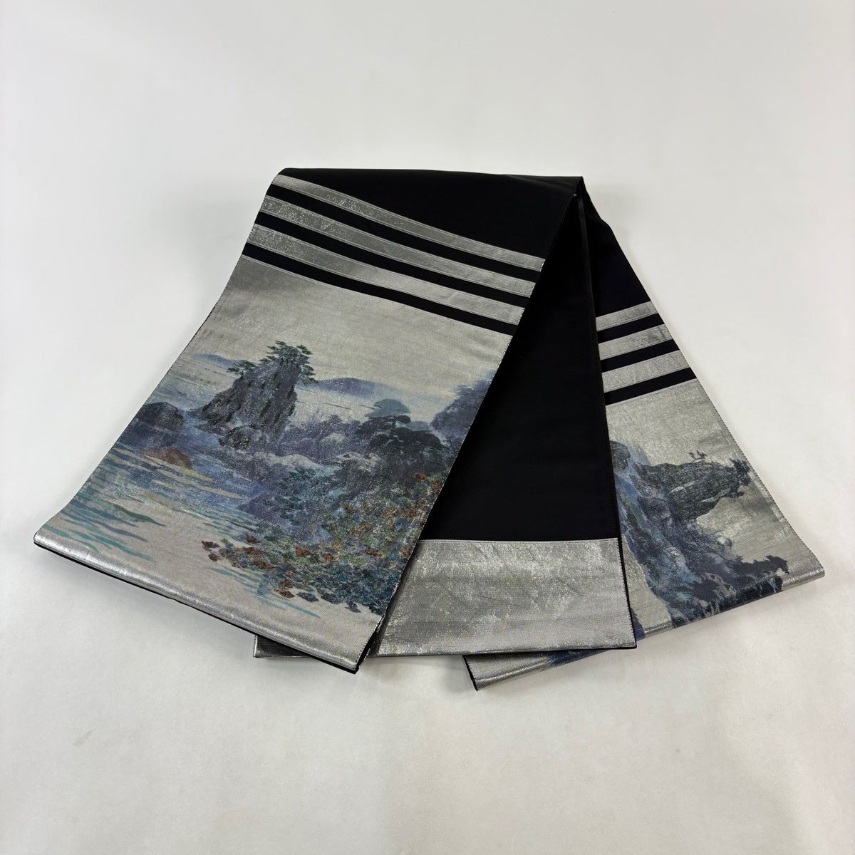 袋帯 秀品 風景 水面 箔 黒 お太鼓柄 正絹