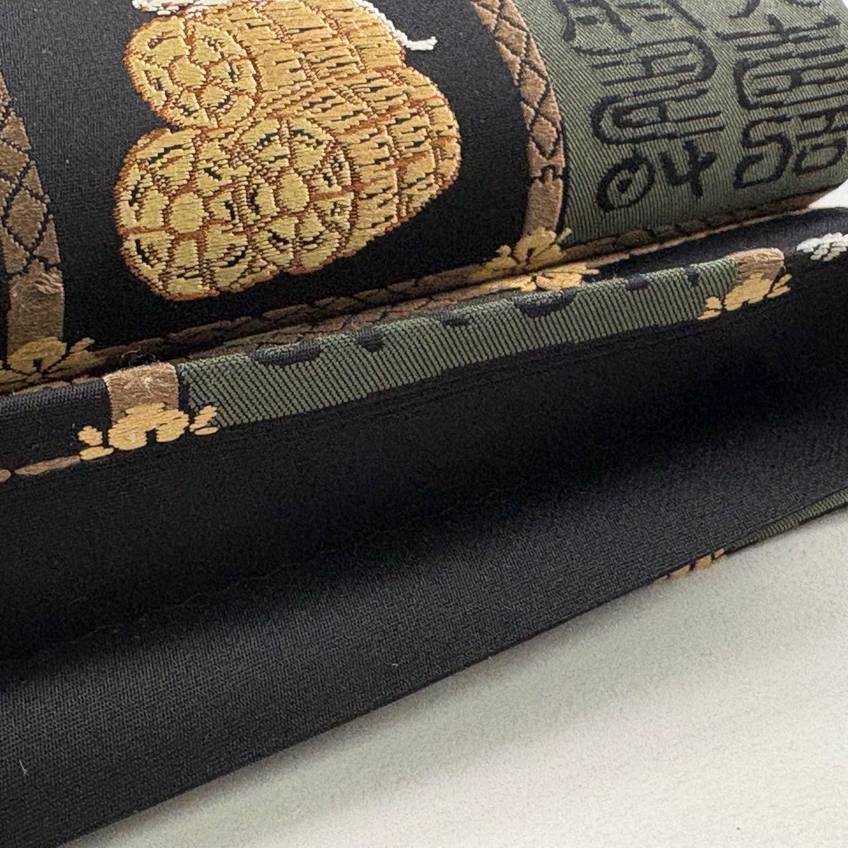 袋帯 逸品 猫 金糸 箔 黒 お太鼓柄 正絹