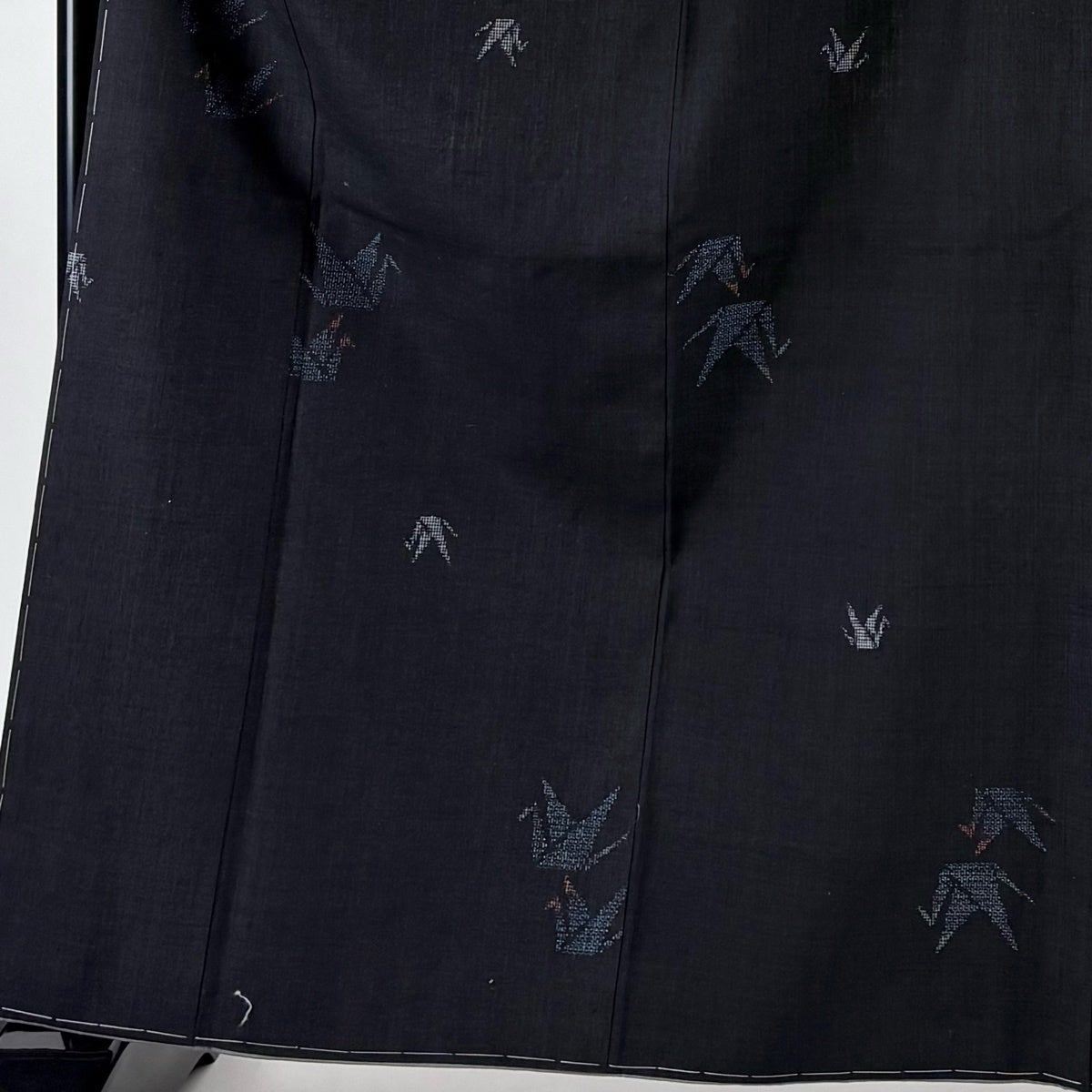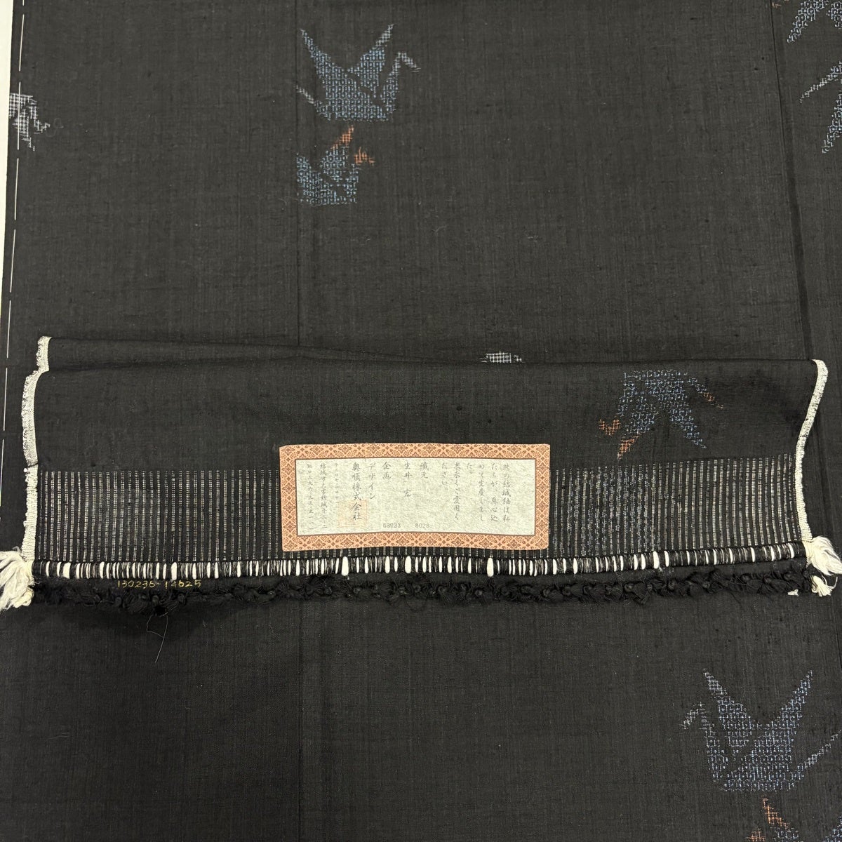 結城紬 身丈163.5cm 裄丈66.5cm M 袷 本場結城紬 奥順 証紙あり 折鶴 亀甲絣 黒 正絹 逸品