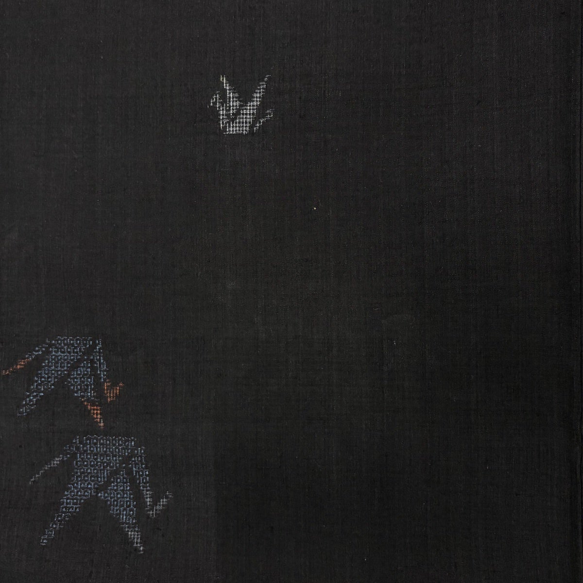 結城紬 身丈159cm 裄丈62.5cm S 単衣 本場結城紬 地空き 証紙あり 草花 短冊 黒 正絹 逸品
