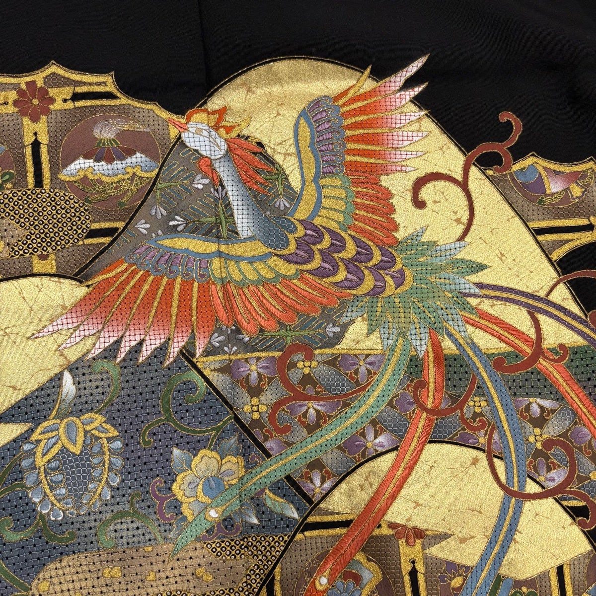 【美品】 袋帯 秀品 証紙あり 花鳥 蜀江文 金糸 箔 墨色 六通 正絹