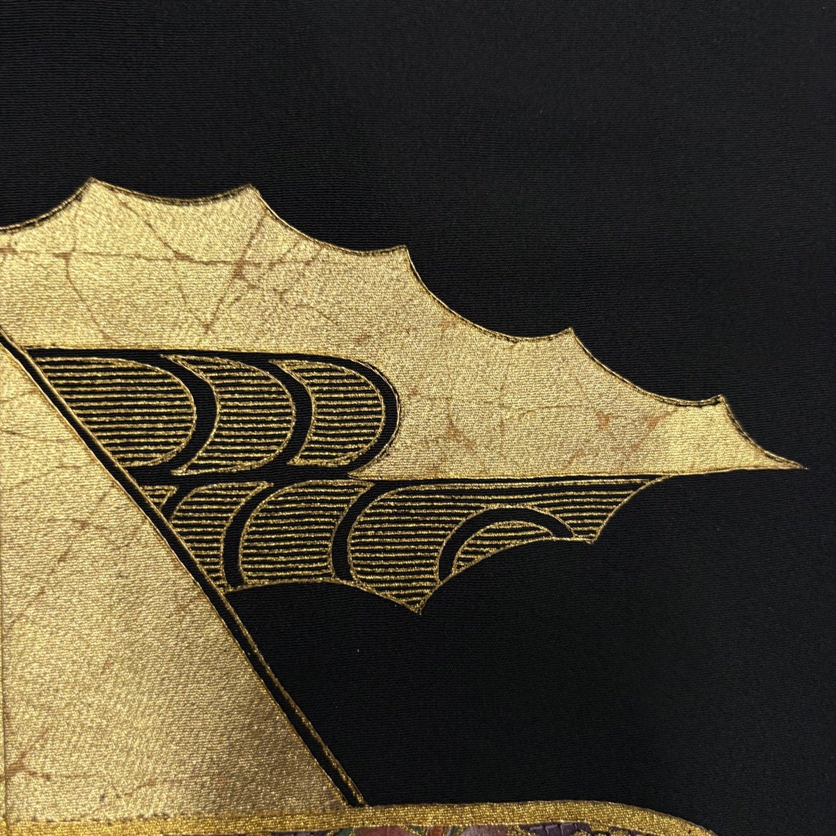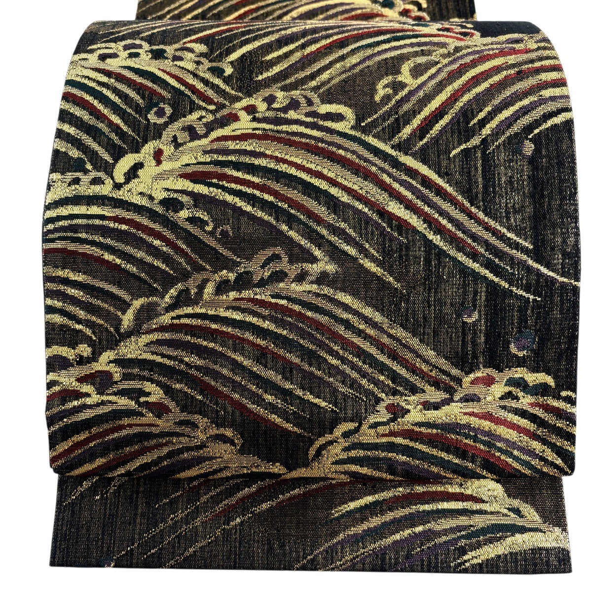 袋帯 逸品 証紙あり 波 箔 墨色 六通 正絹