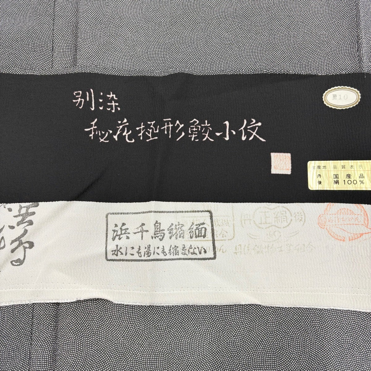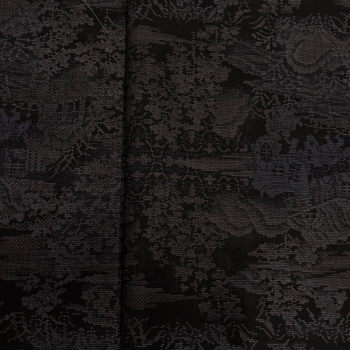 反物 秀品 紬 亀甲 花柄 墨色 正絹
