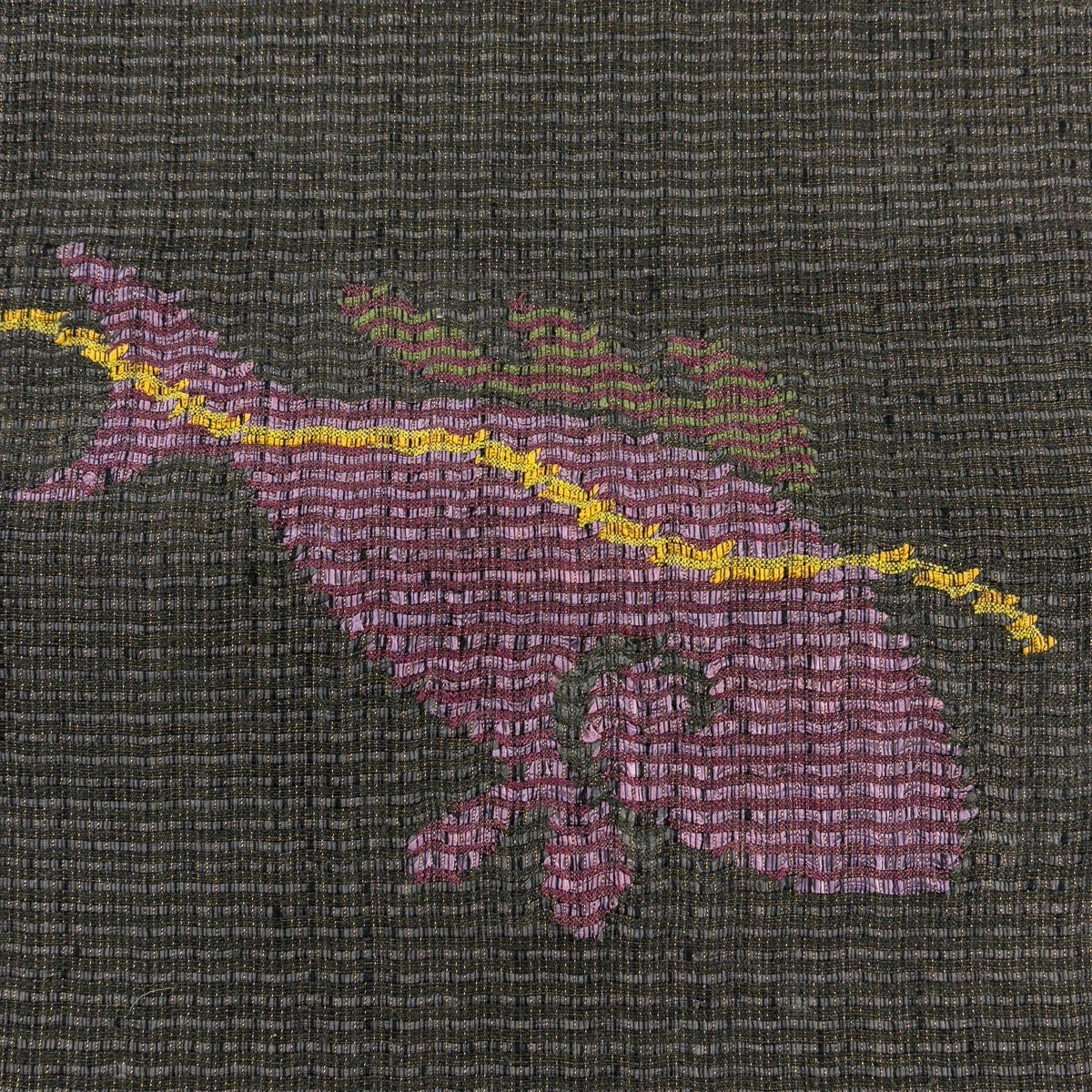 名古屋帯 優品 八寸名古屋帯 松葉仕立て 樹下鳥獣文 縞 墨色 正絹