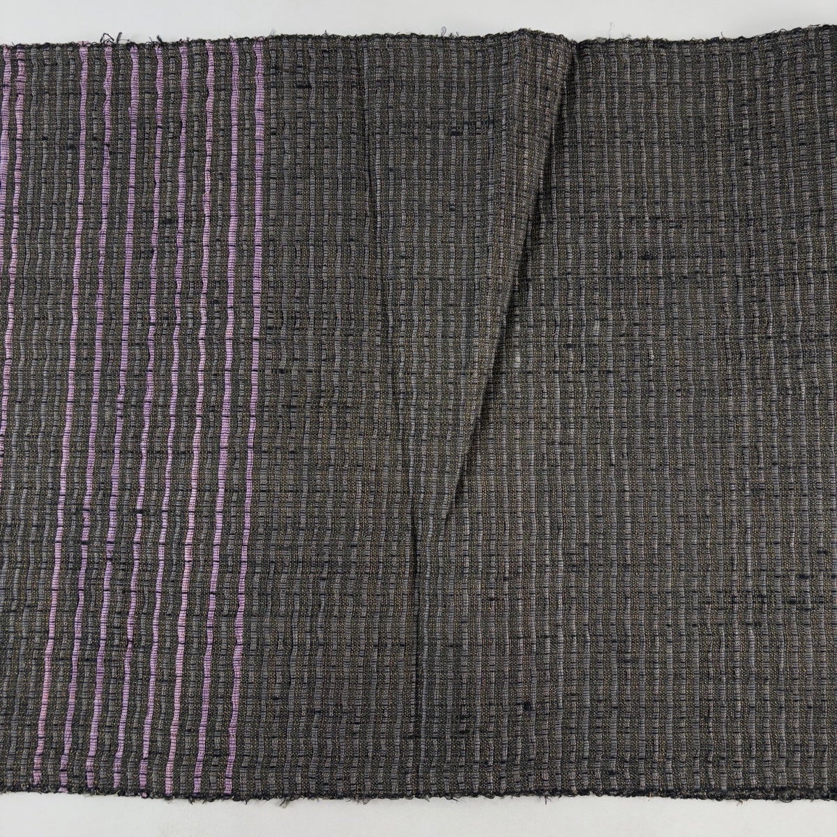 【美品】 袋帯 逸品 落款あり ひなや工房 幾何学模様 縞 金糸 墨色 お太鼓柄 正絹
