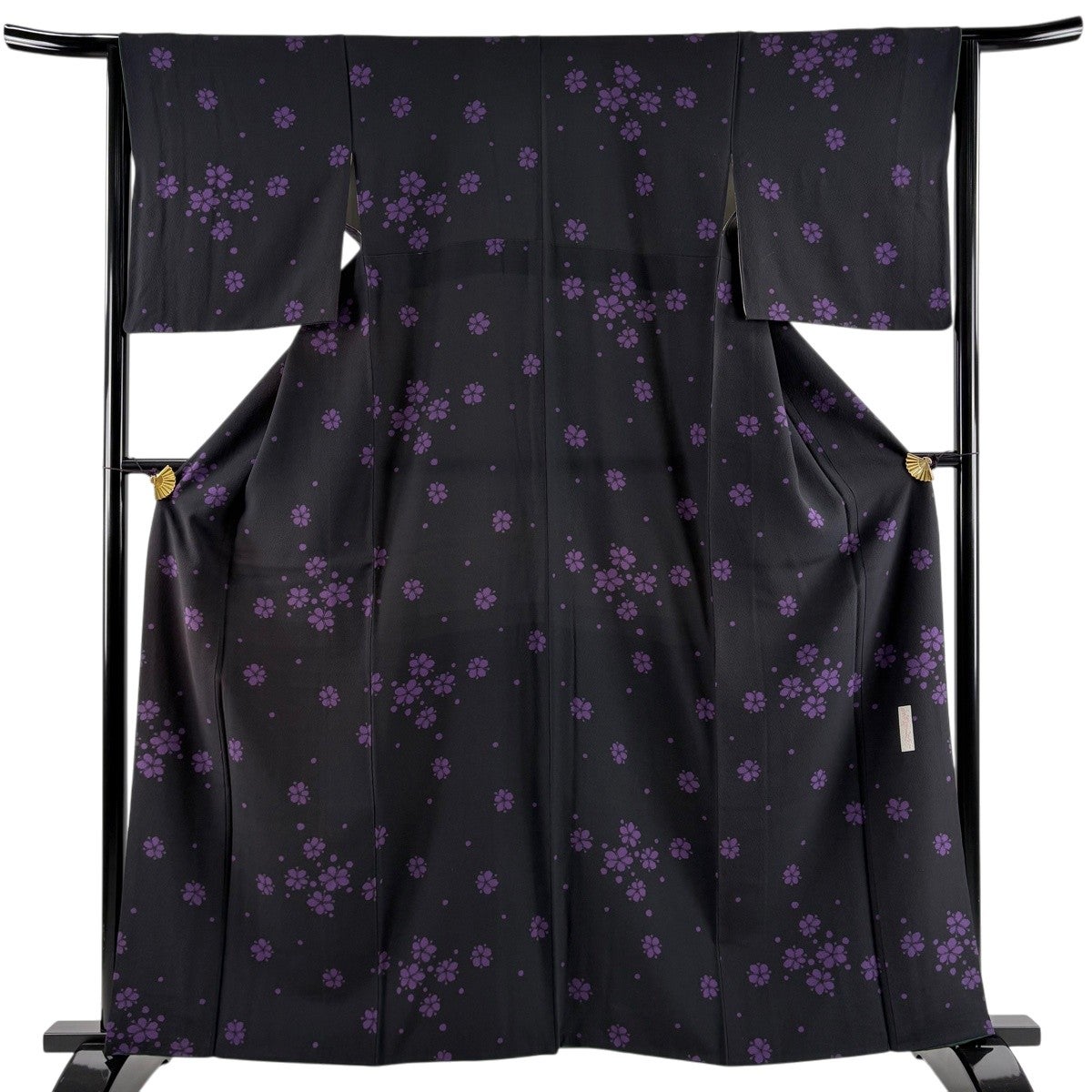 大島紬 身丈168cm 裄丈68.5cm L 袷 純泥染 証紙あり 桜 菱 墨色 正絹 名品