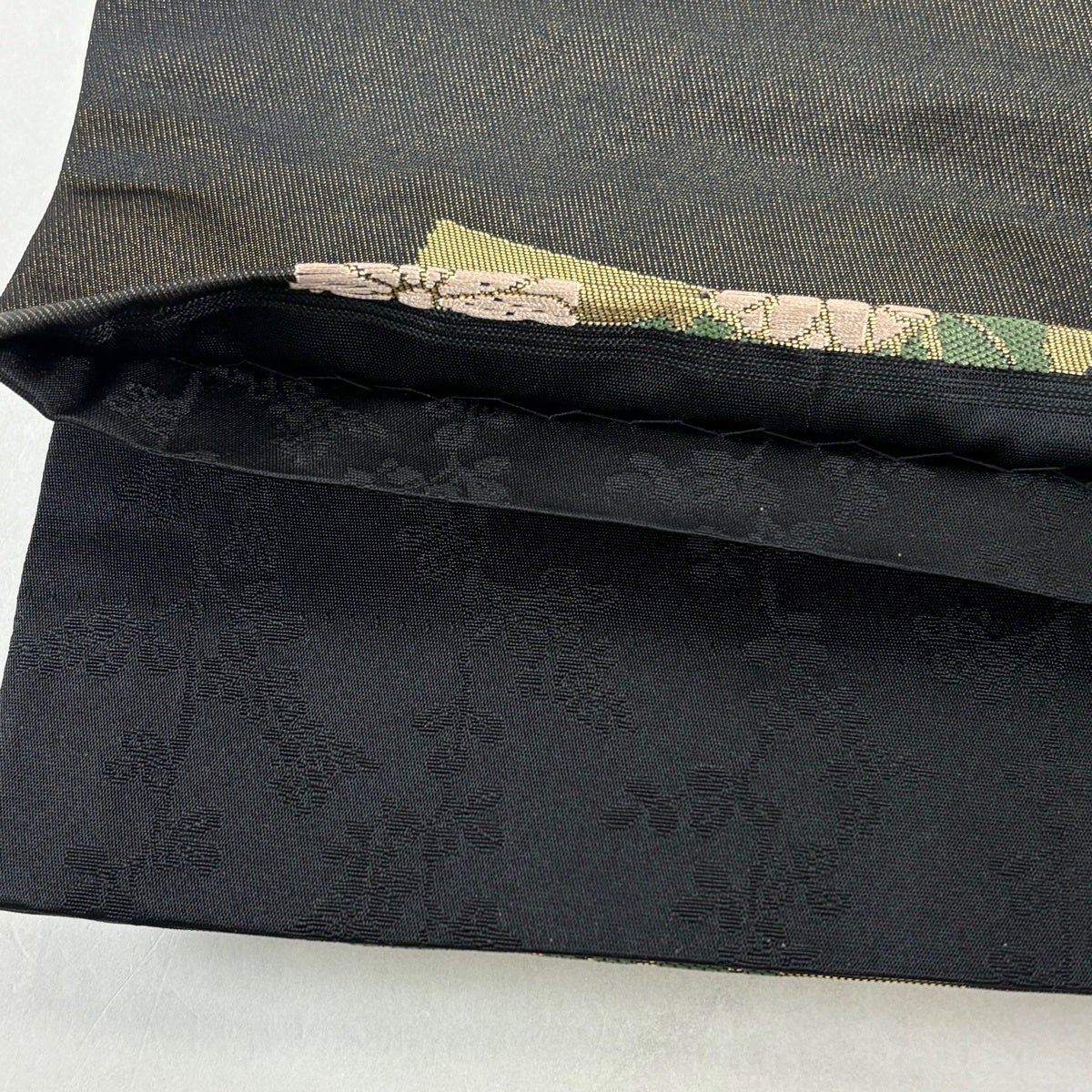【美品】 袋帯 名品 草花 金糸 黒 六通 正絹