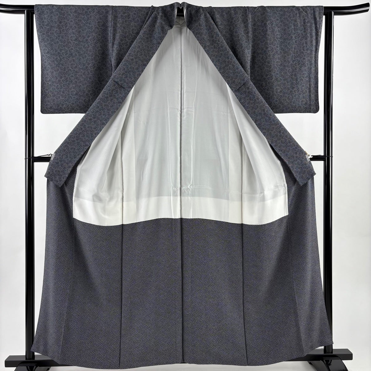 付下げ 身丈156.5cm 裄丈64cm M 袷 紬地 瓢箪 鈴 墨色 正絹 秀品