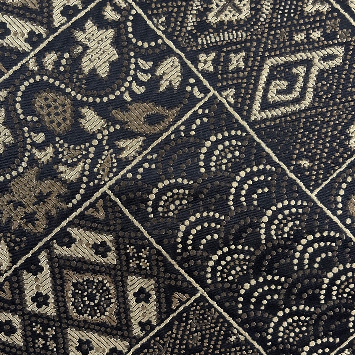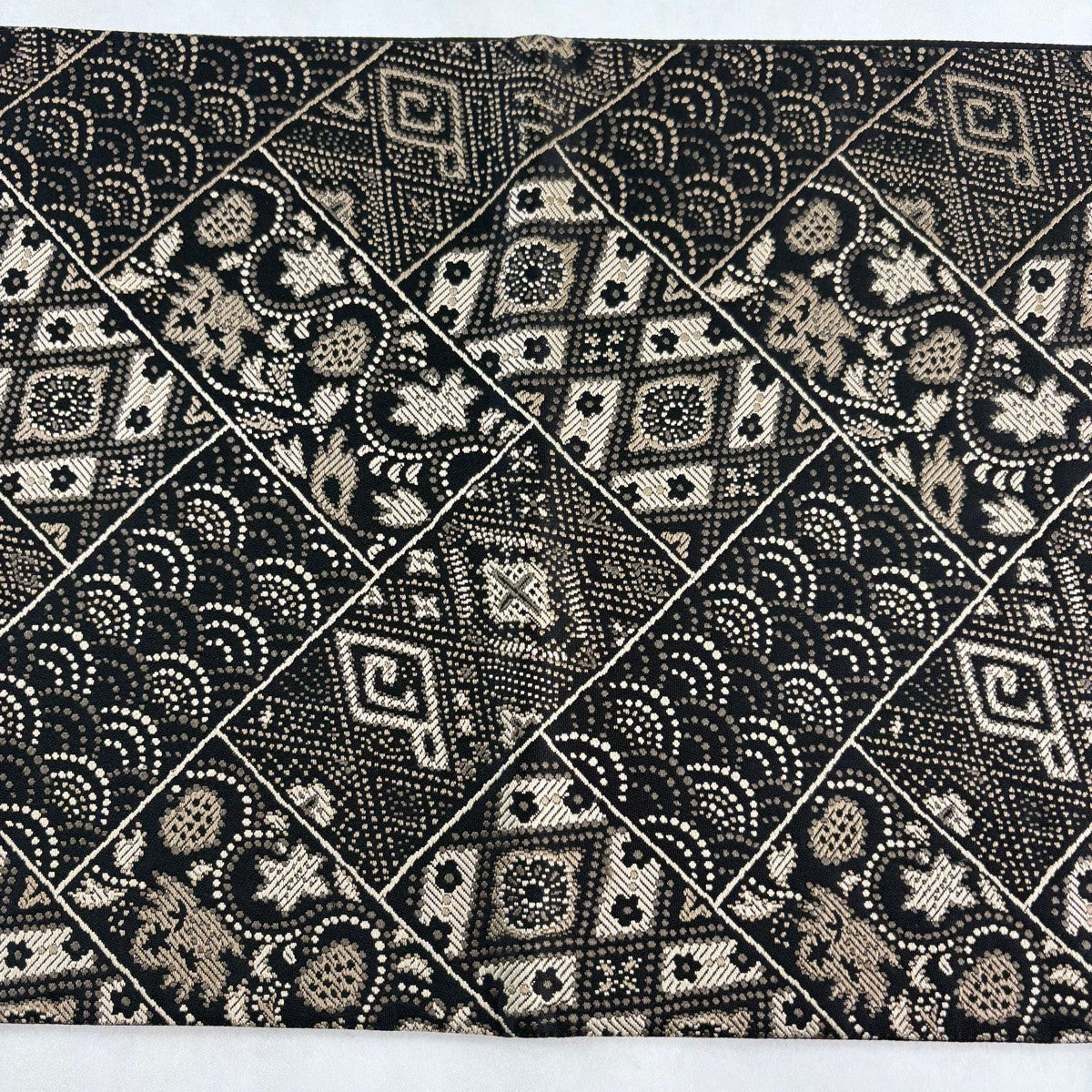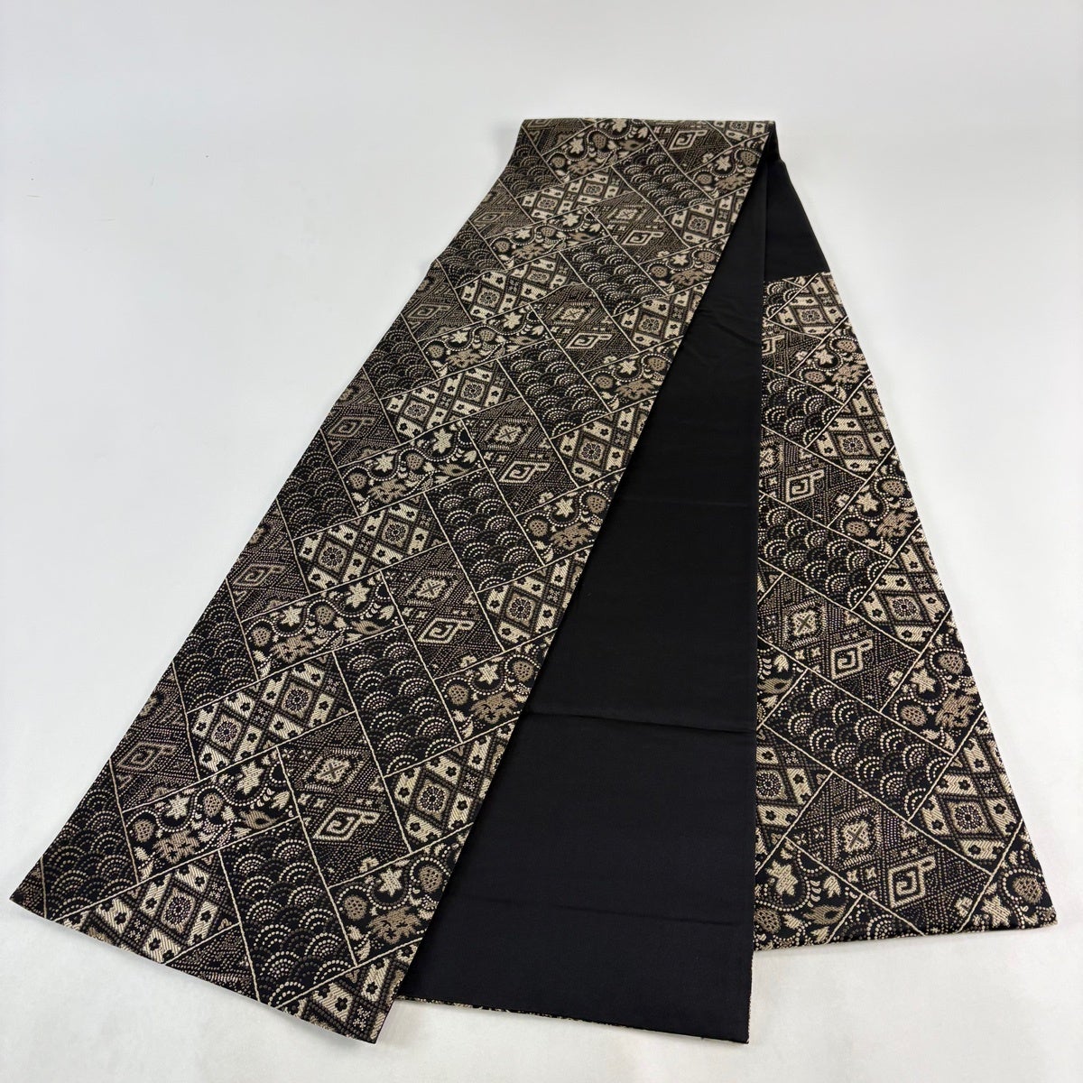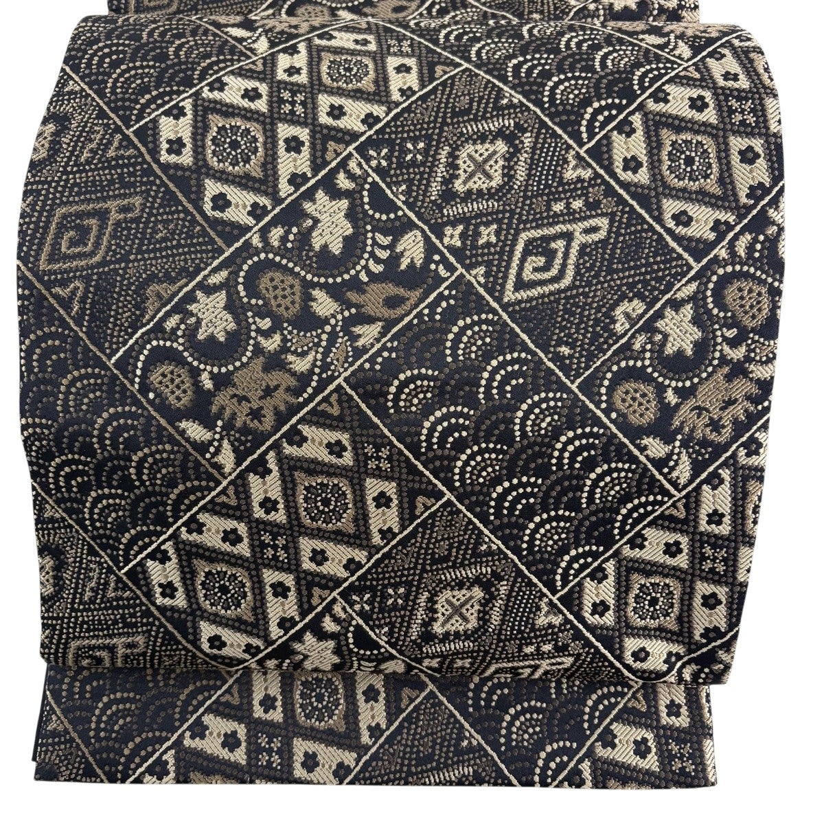 【美品】 袋帯 名品 幾何学模様 黒 全通 正絹