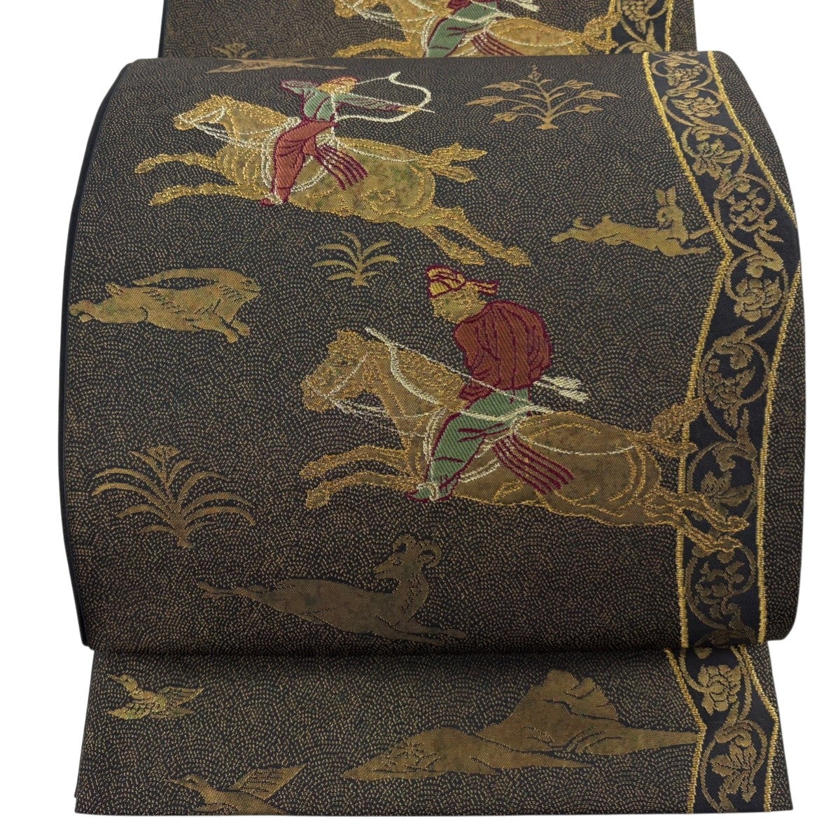 【美品】 袋帯 秀品 華文 花唐草 金糸 箔 黒 六通 正絹