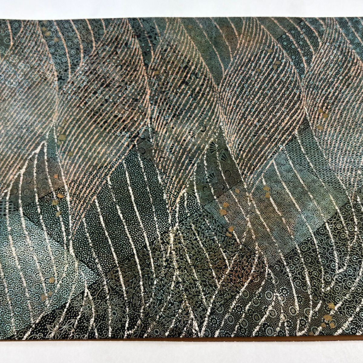 【美品】 袋帯 秀品 幾何学模様 箔 金銀彩 黒 六通 正絹