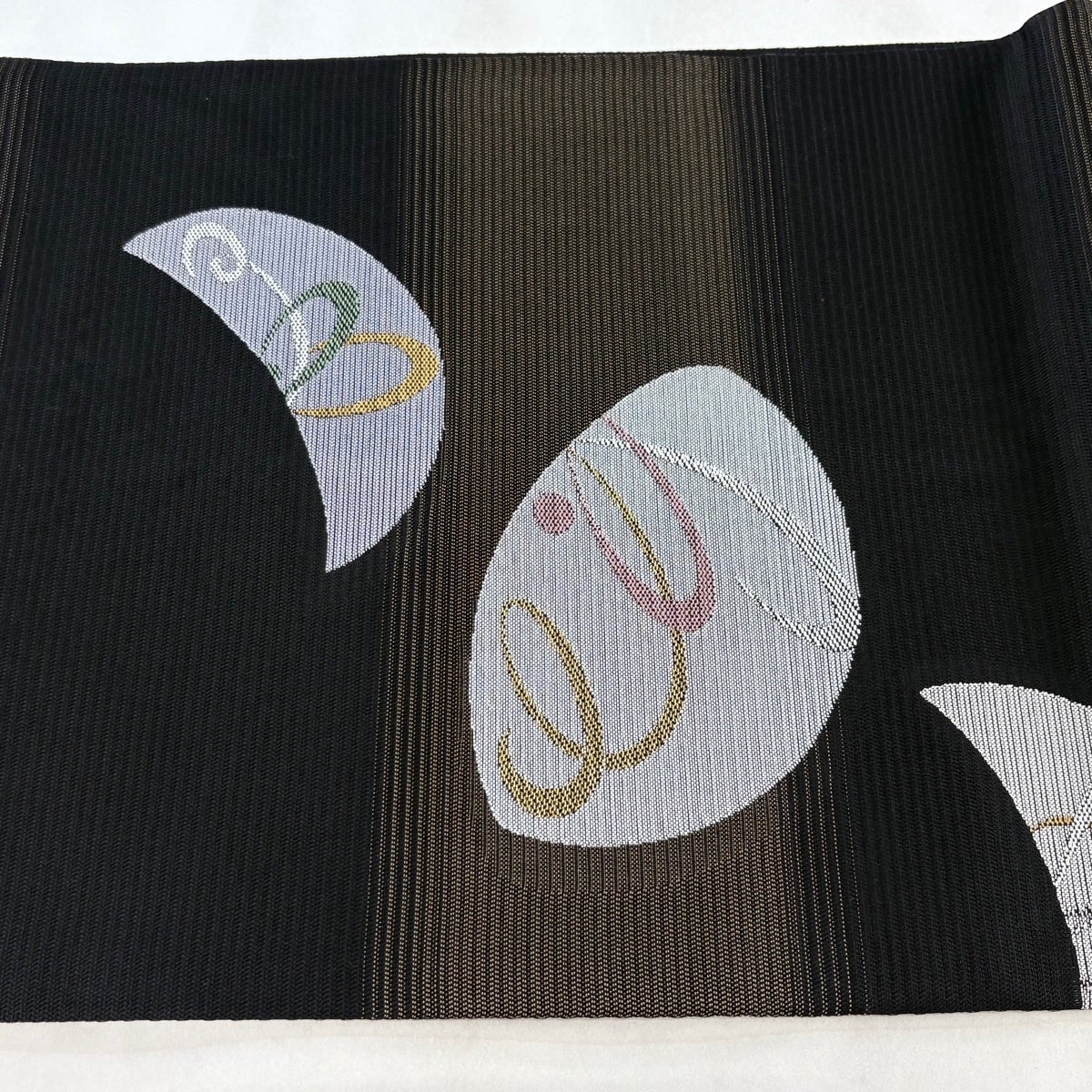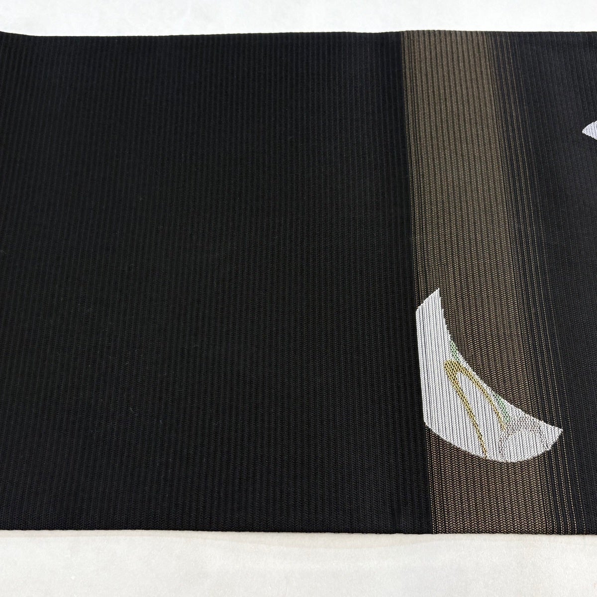 開き名古屋帯 逸品 龍村美術織物 比翼仕立て 彩貝文 金糸 黒 正絹