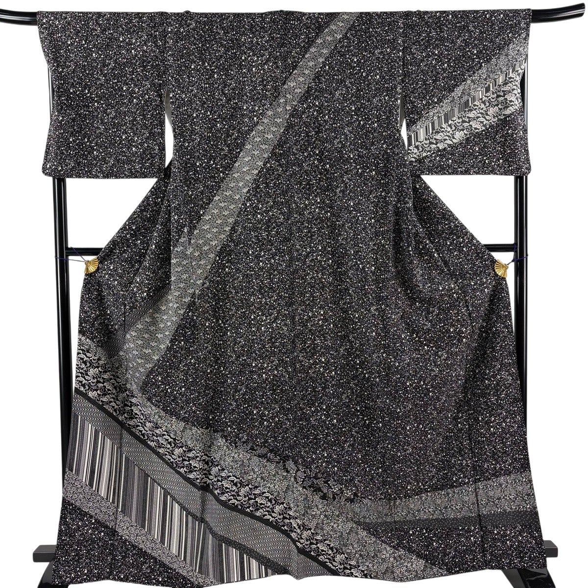 訪問着 身丈165.5cm 裄丈68cm L 袷 桐 縦縞 黒 正絹 秀品