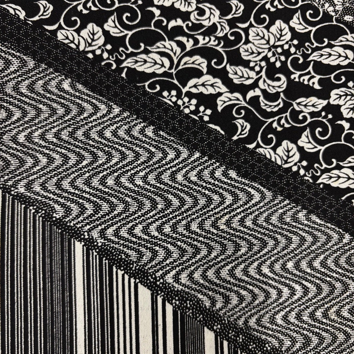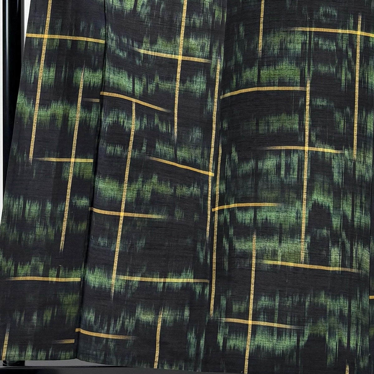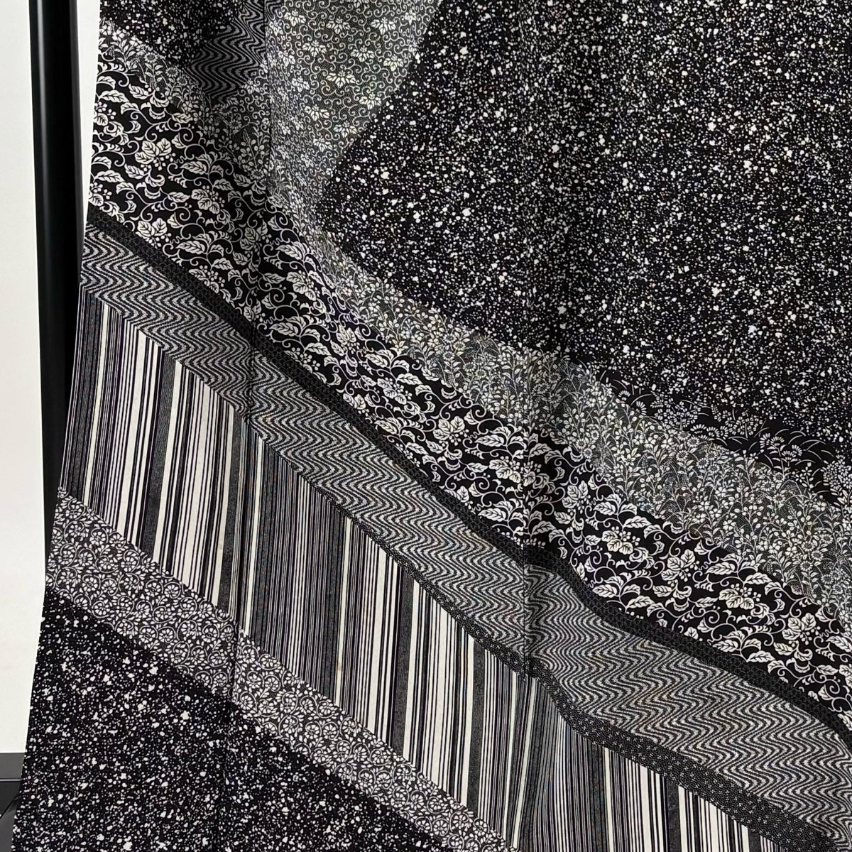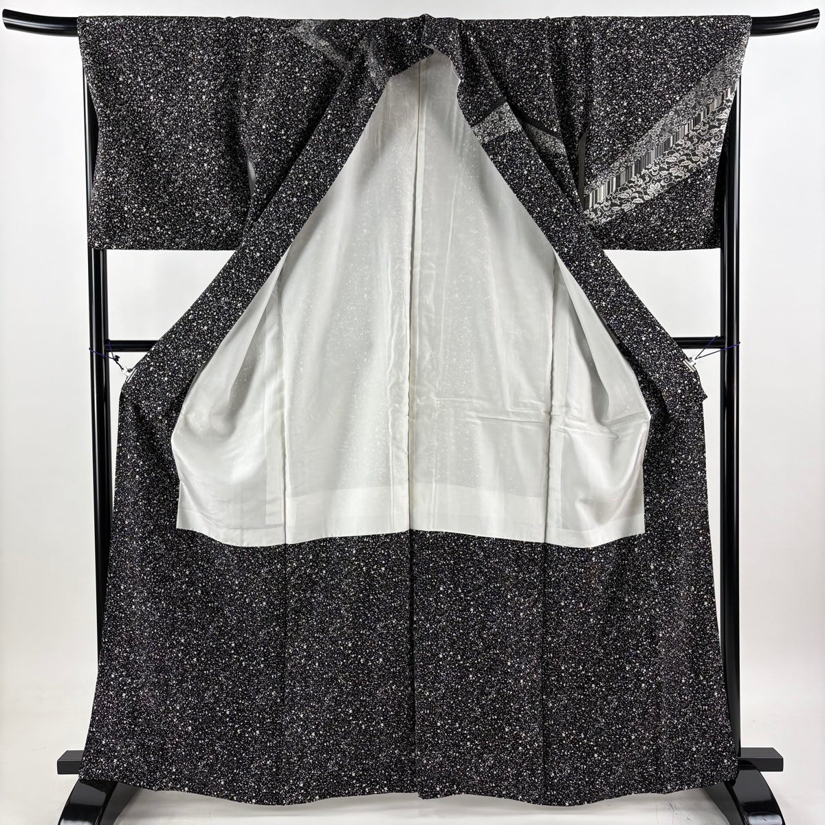 紬 身丈159.5cm 裄丈65.5cm M 単衣 幾何学模様 黒 正絹 秀品