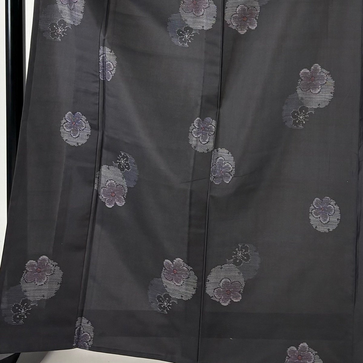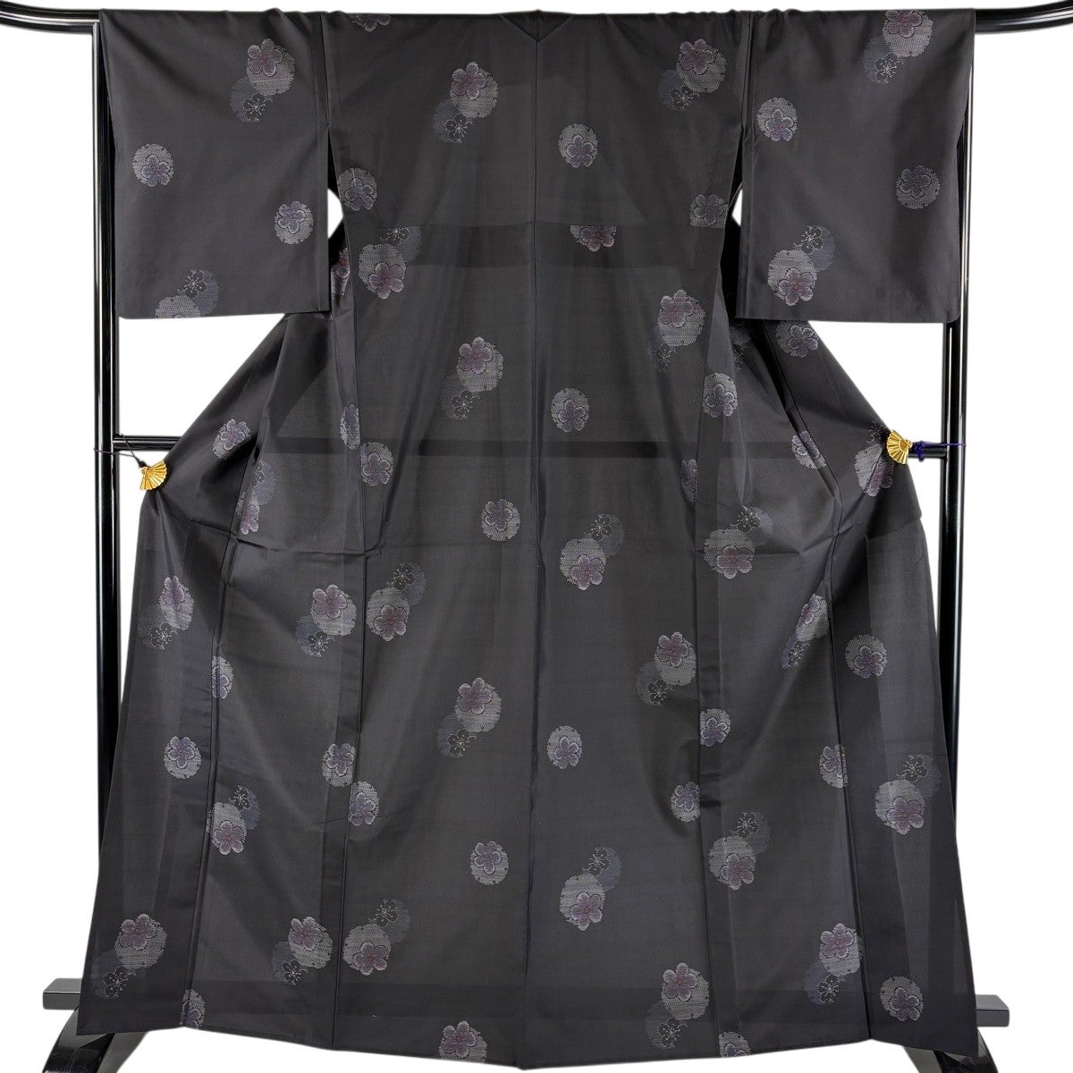 お召 身丈160cm 裄丈64.5cm M 袷 斜め格子 黒 正絹 逸品