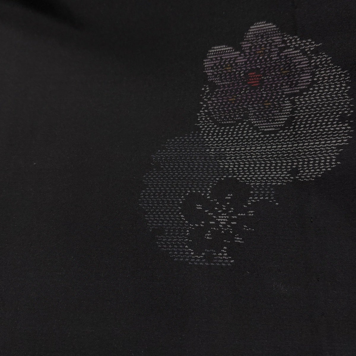 小紋 身丈165.5cm 裄丈64.5cm M 袷 小花 幾何学 黒 正絹 優品