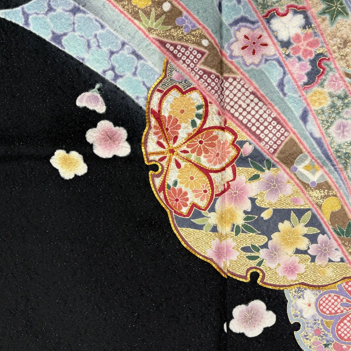 振袖 身丈164cm 裄丈67.5cm L 袷 薬玉 桜 金通し 金彩 黒 正絹 逸品