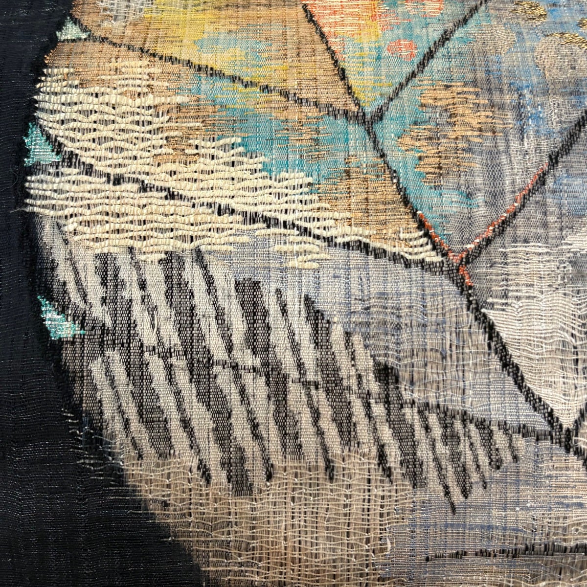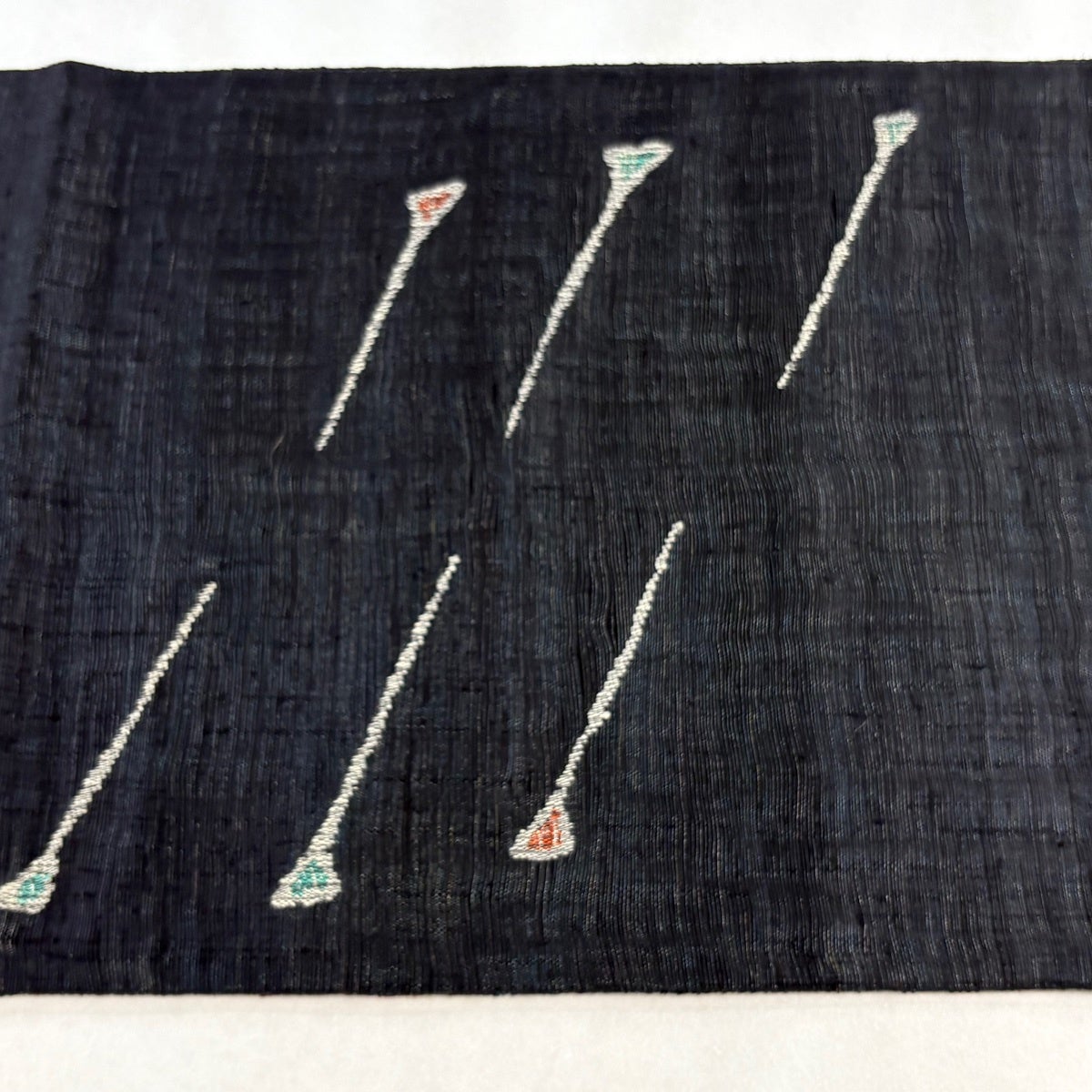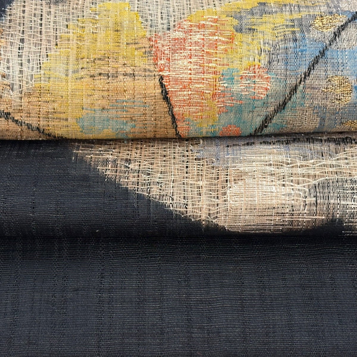 【美品】 袋帯 名品 渡文 落款あり 夏帯 宝飾文 金銀糸 箔 黒 お太鼓柄 正絹
