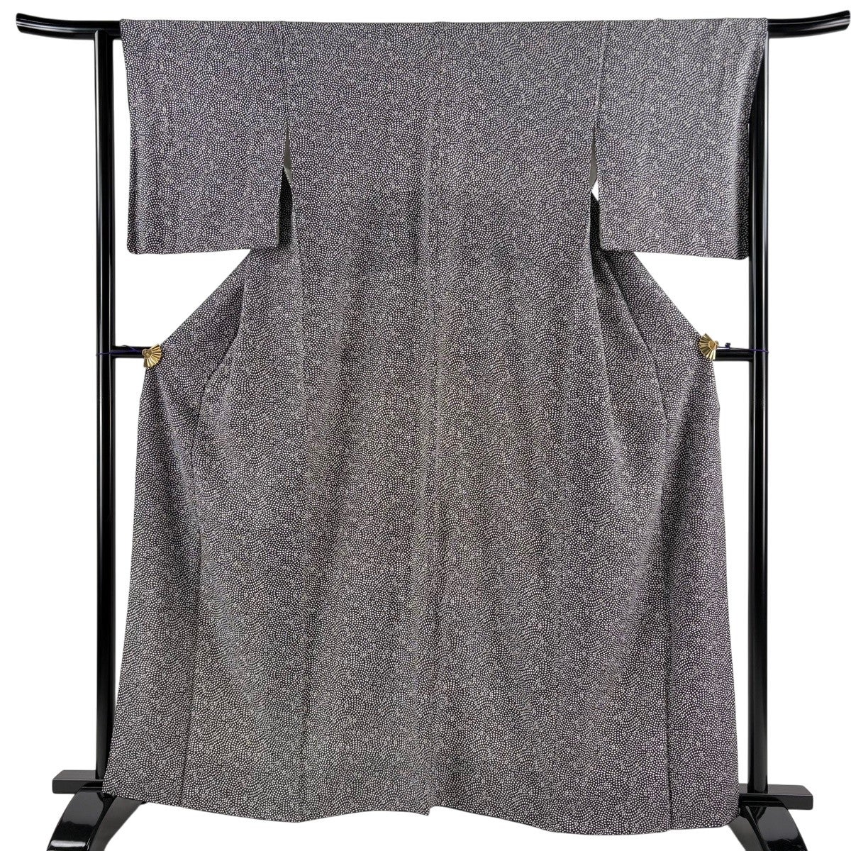 【美品】 小紋 身丈151cm 裄丈61.5cm S 袷 幾何学 縮緬 黒 正絹 優品