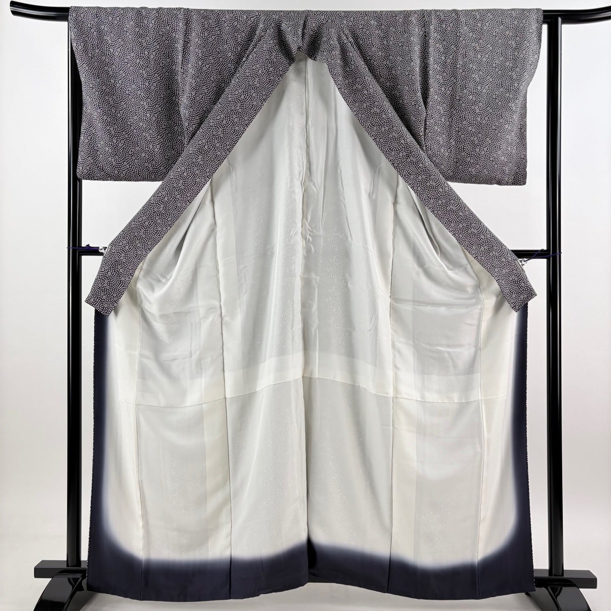 【美品】 小紋 身丈158cm 裄丈65cm M 袷 葡萄 霞 絞り 黒 正絹 秀品