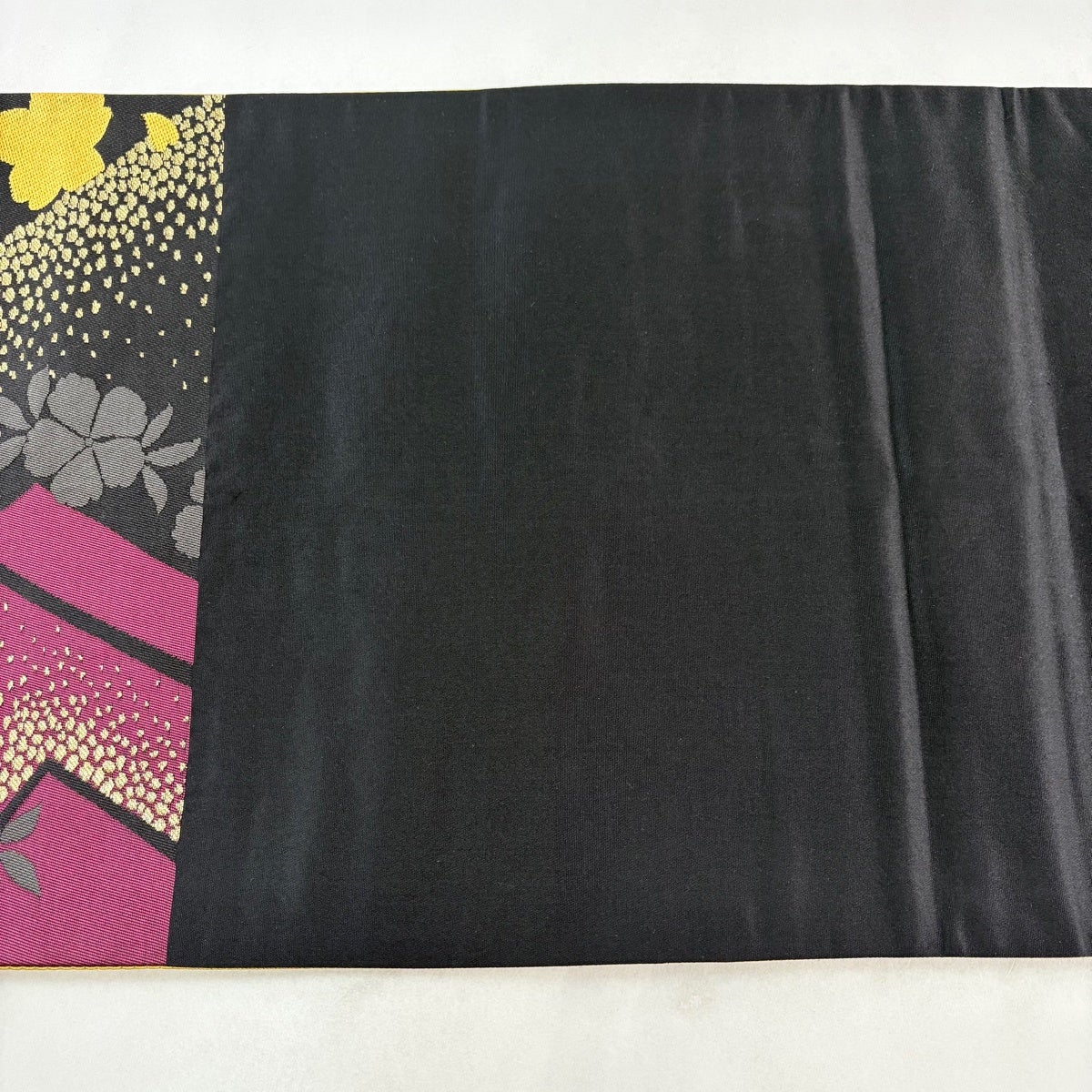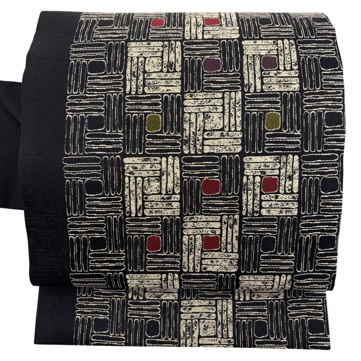 袋帯 名品 やまと 幾何学 黒 お太鼓柄 正絹