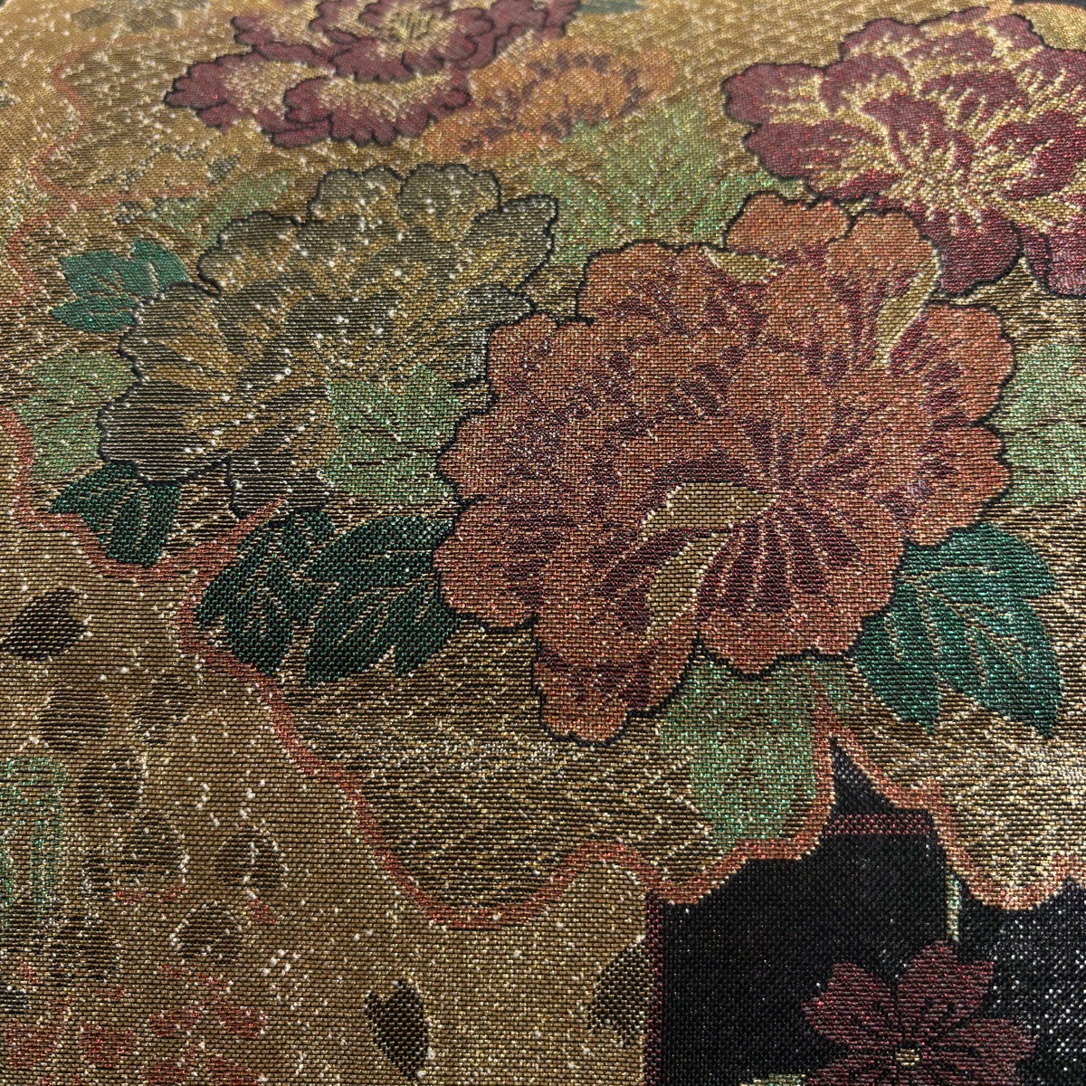 【美品】 袋帯 秀品 牡丹 箔 黒 六通 正絹