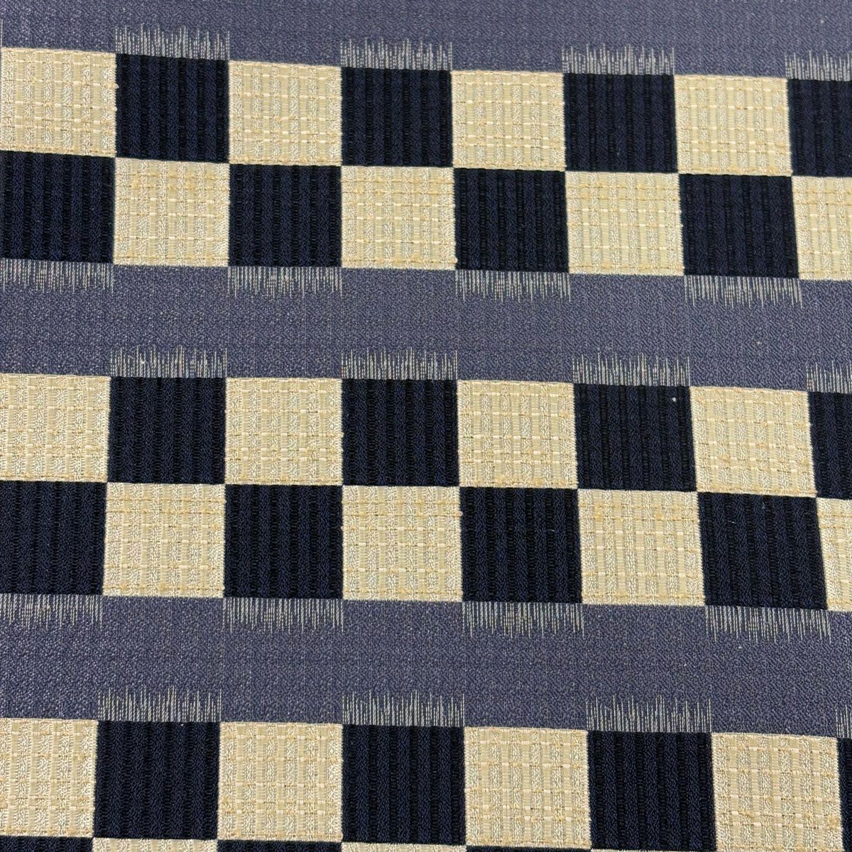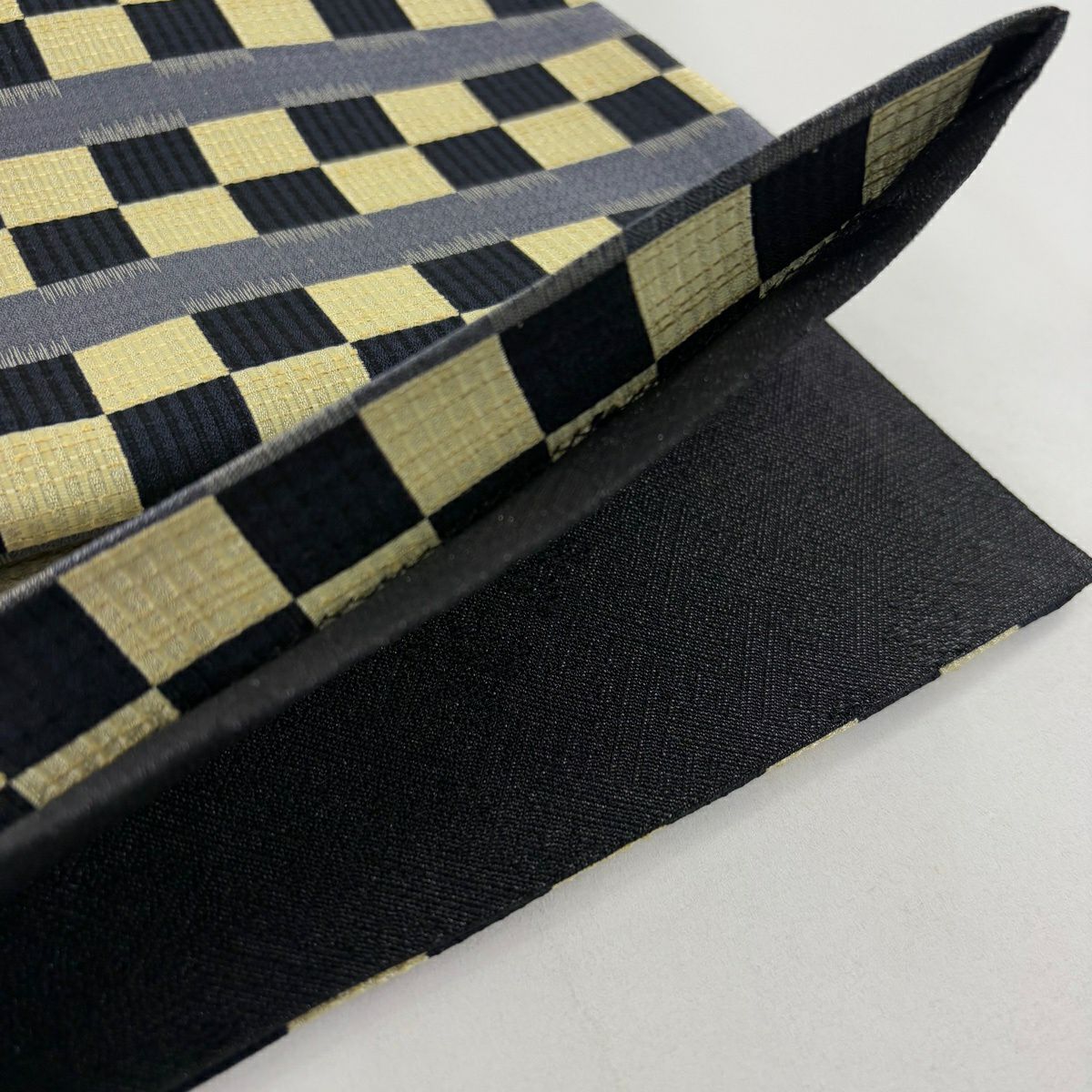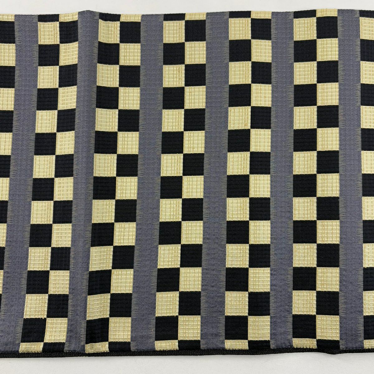【美品】 袋帯 名品 市松 縞 黒 全通 正絹