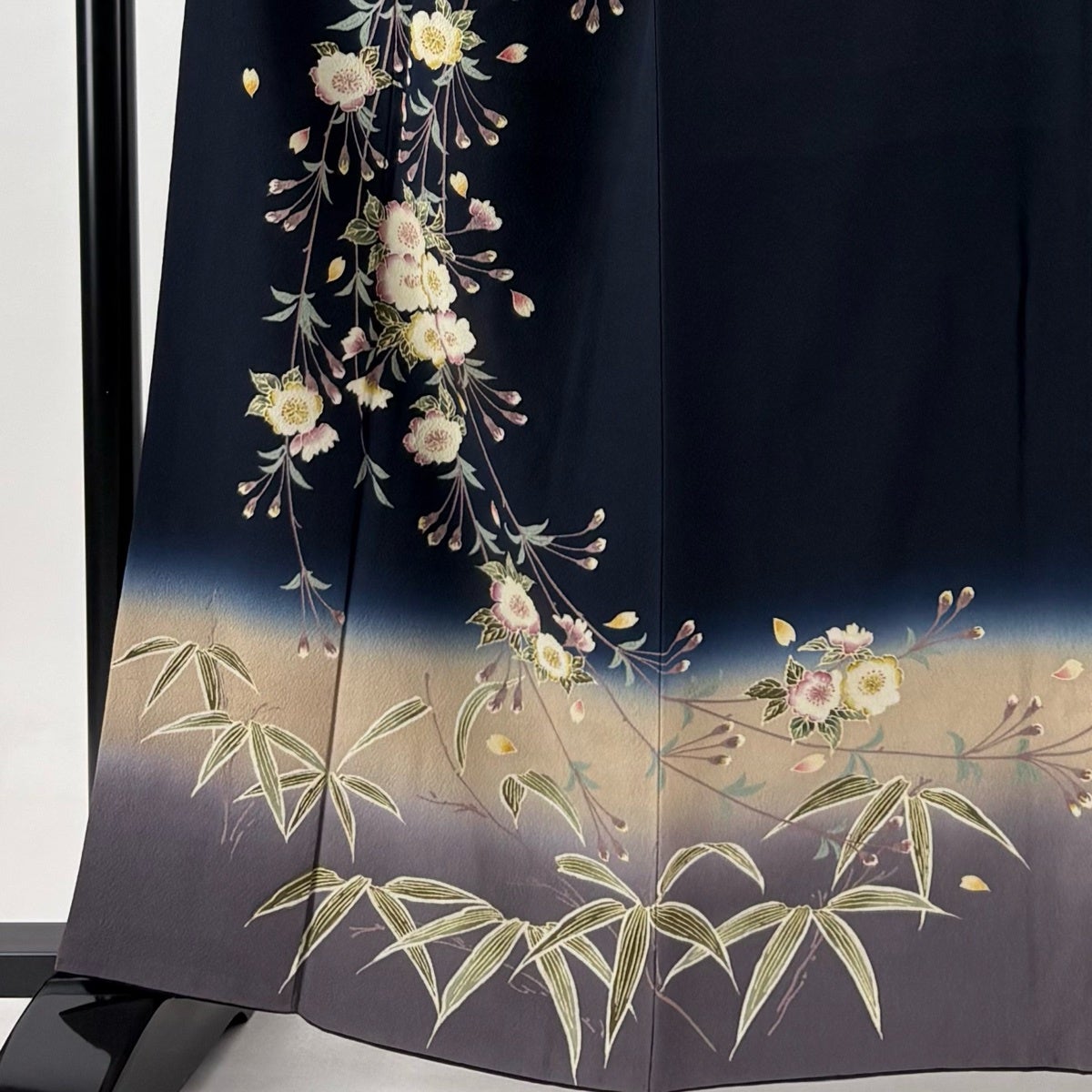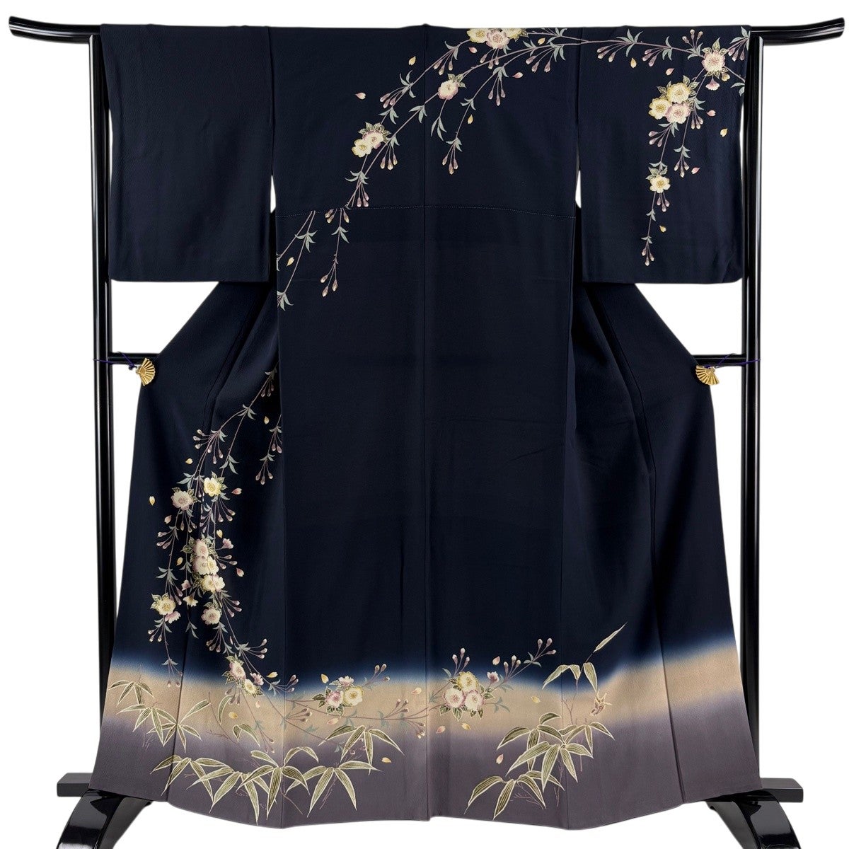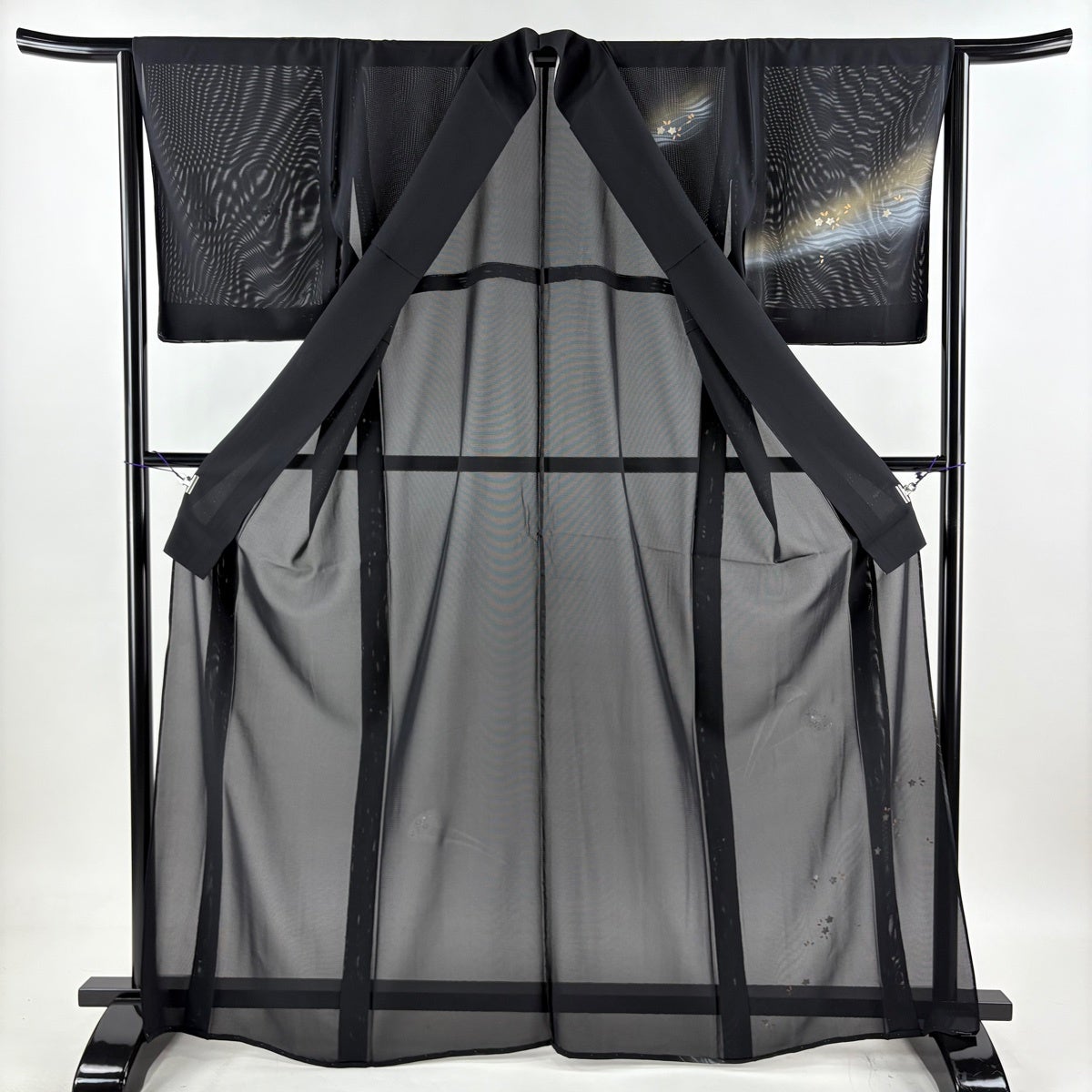 付下げ 身丈167cm 裄丈64.5cm M 薄物 絽 簪 草花 金銀彩 ぼかし 黒 正絹 秀品