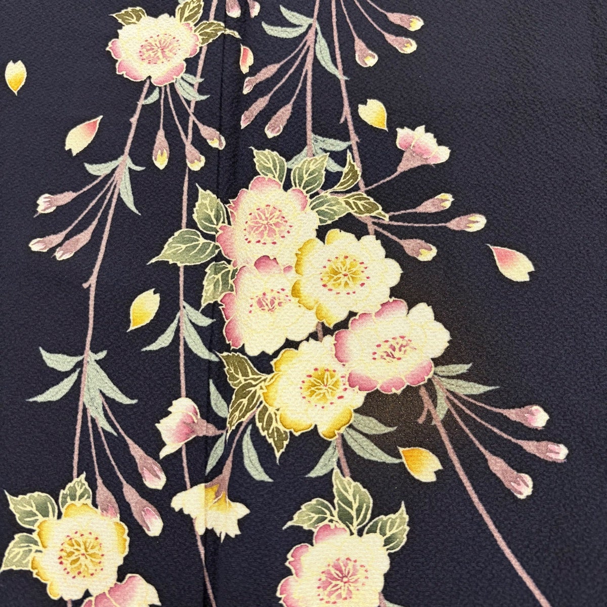 【美品】 振袖 身丈166.5cm 裄丈68.5cm L 袷 桜 熨斗 銀通し 箔 黒 正絹 逸品