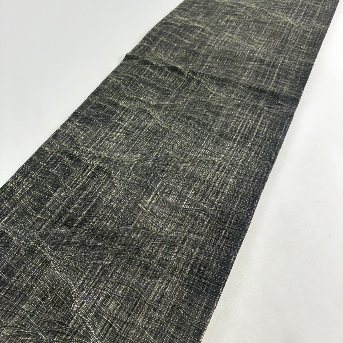 【美品】 袋帯 秀品 間道 片輪車 波 紹巴 黒灰 六通 正絹